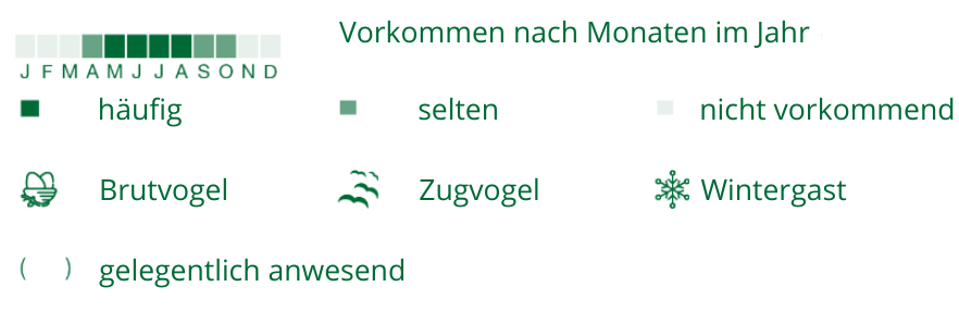 Nicht alle vorgestellten Vögel sind das ganze Jahr über im Schutzgebiet zu sehen. Die einen nisten und sind in der warmen Jahreszeit anwesend, während andere nur den Winter dort verbringen. Wieder andere bleiben nur ein paar Tage, wenn sie auf Vogelzug oder Wanderschaft einen Zwischenstopp einlegen, um zu fressen.