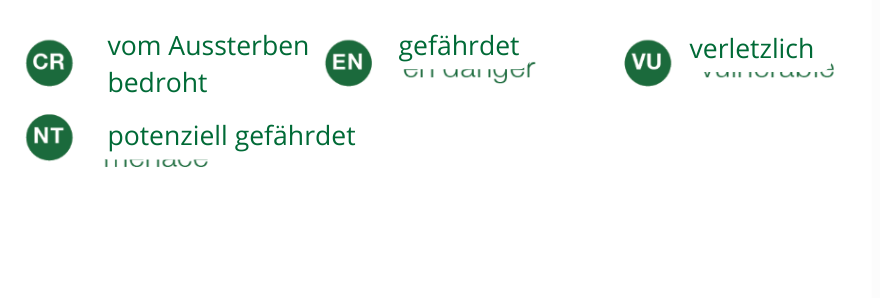 Das kommt auf die Art an. Bei einigen ist die Population stabil oder wächst sogar. Bei anderen geht die Zahl der Tiere mehr oder weniger stark zurück, hauptsächlich, weil ihr Lebensraum verschwindet. Sie erscheinen dann in der Roten Liste der gefährdeten Arten der Schweiz und werden in die folgenden Kategorien eingestuft.
