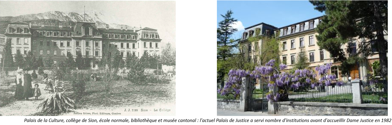 Der Umbau des ehemaligen Kollegiums von Sitten beginnt 1980. Nach zweijähriger Bauzeit zieht der Justizpalast in das vom Architekturbüro André Bornet renovierte Gebäude ein.