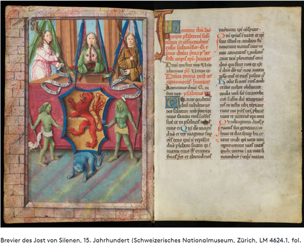 Zweibändiges Brevier, das 1493 für Jost von Silenen († 1498), Bischof von Sitten von 1482 bis zu seiner Absetzung im Jahr 1497, angefertigt wurde.