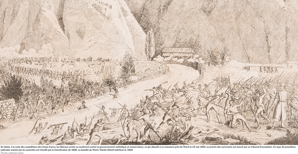 21. Mai 1844. Die Trient-Schlucht in Vernayaz im Wallis war Schauplatz heftiger Kämpfe. Die siegreichen Konservativen hatten ein Sondergericht, das Zentralgericht, eingesetzt. Dieses Gericht hatte über politische Vergehen geurteilt und die Opposition unterdrückt.