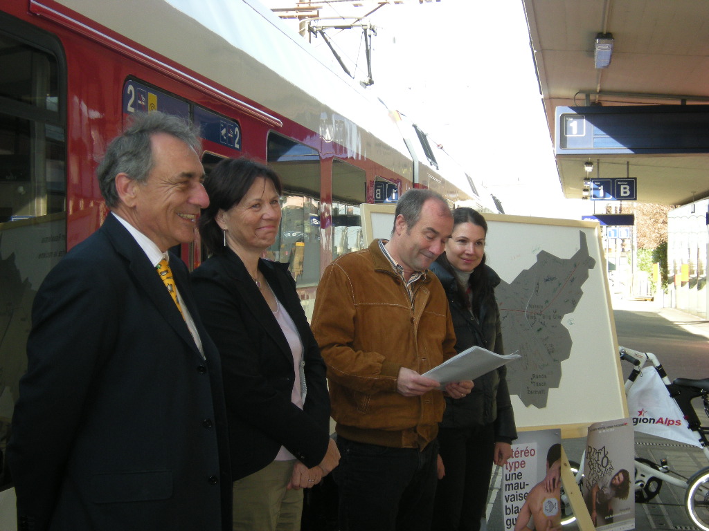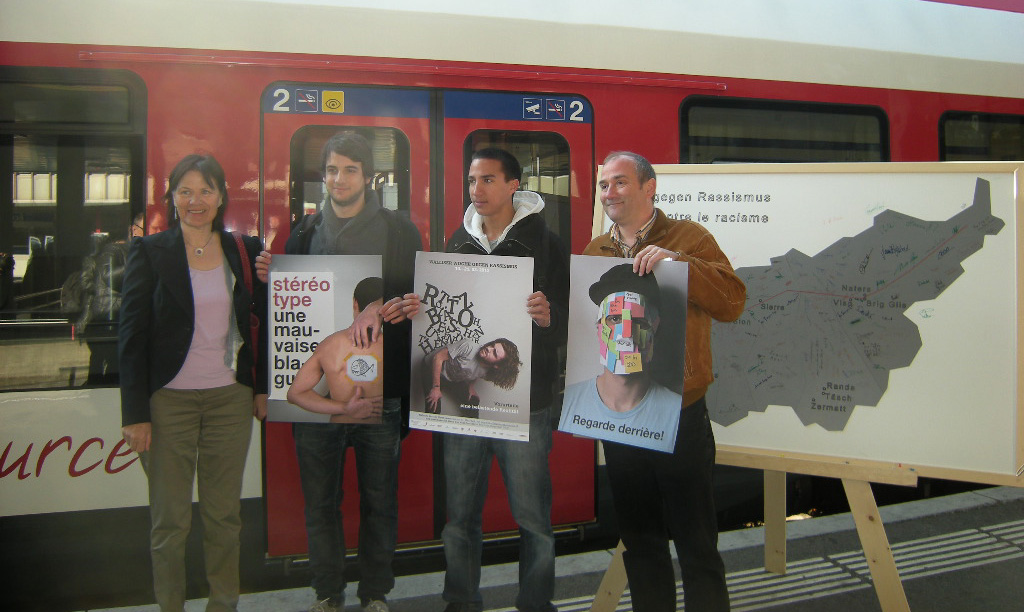 (IVS).- Le lundi 21 mars 2011, journée internationale pour l’élimination de la discrimination raciale, la semaine valaisanne contre le racisme s’est terminée par la remise des prix aux gagnants du concours. La Cheffe du département de la sécurité, des affaires sociales et de l’intégration, Mme Esther Waeber-Kalbermatten a remis en gare de Sion, les prix aux trois gagnants du tirage au sort du concours. Par la même occasion, trois étudiants de l’Ecole cantonale d’art ont reçu une reconnaissance pour leurs affiches choisies pour accompagner visuellement la campagne sur le thème des préjugés (stéréotypes).