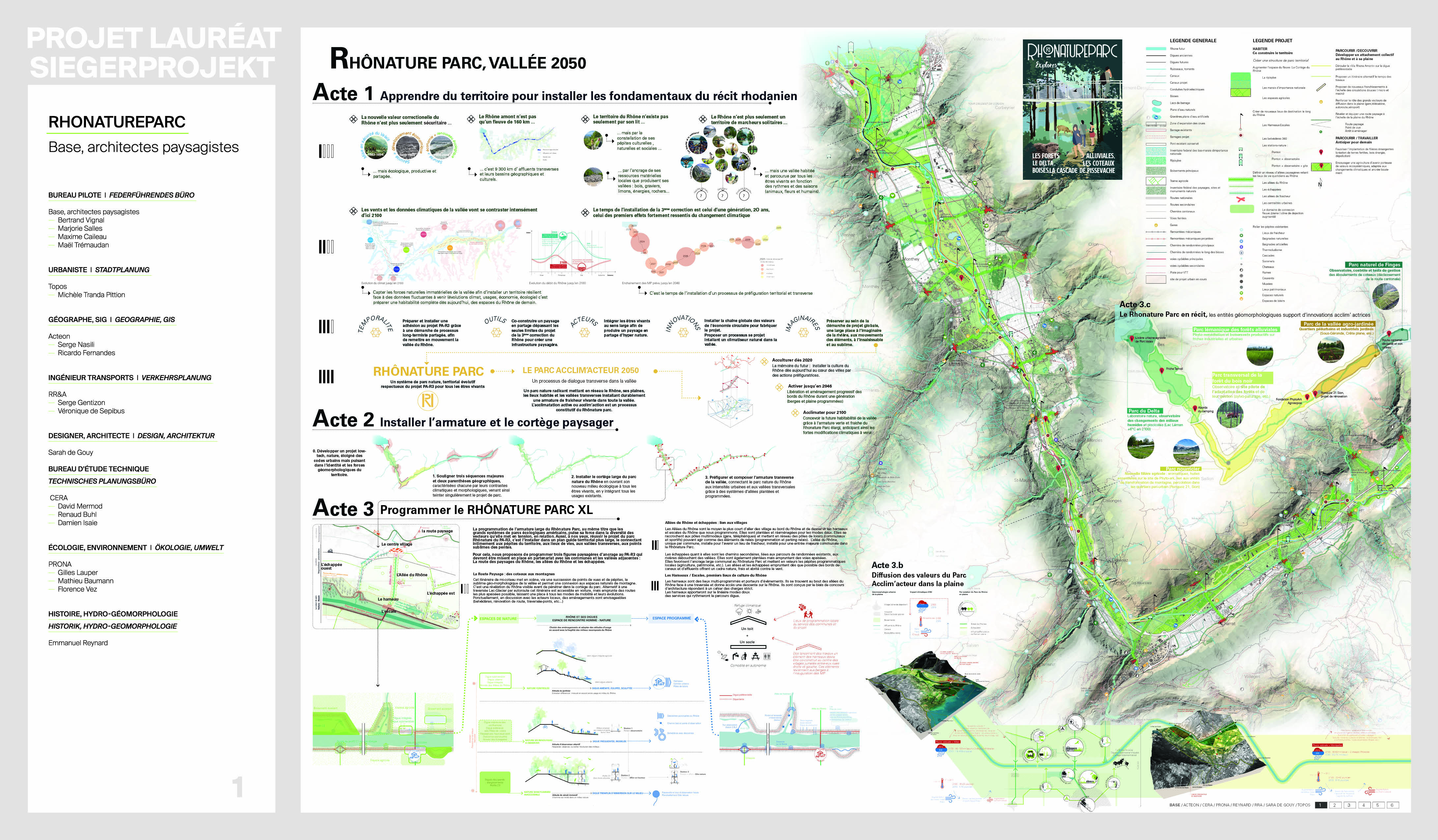 En raison de l’ampleur de la démarche, ce concours a été ouvert à l’international. Au total 13 dossiers regroupant plus de 60 bureaux dans les domaines de compétences de l’urbanisme, de l’architecture du paysage, de la biologie appliquée, de l’environnement, de la mobilité et du design, ont été déposés. Au terme d’une première délibération du collège d’experts, 5 équipes ont été sélectionnées pour concourir dont les pilotes étaient les bureaux Base (Lyon), Vulkan (Zürich), Urbaplan (Lausanne), Ilex (Lyon), Big (Copenhague).