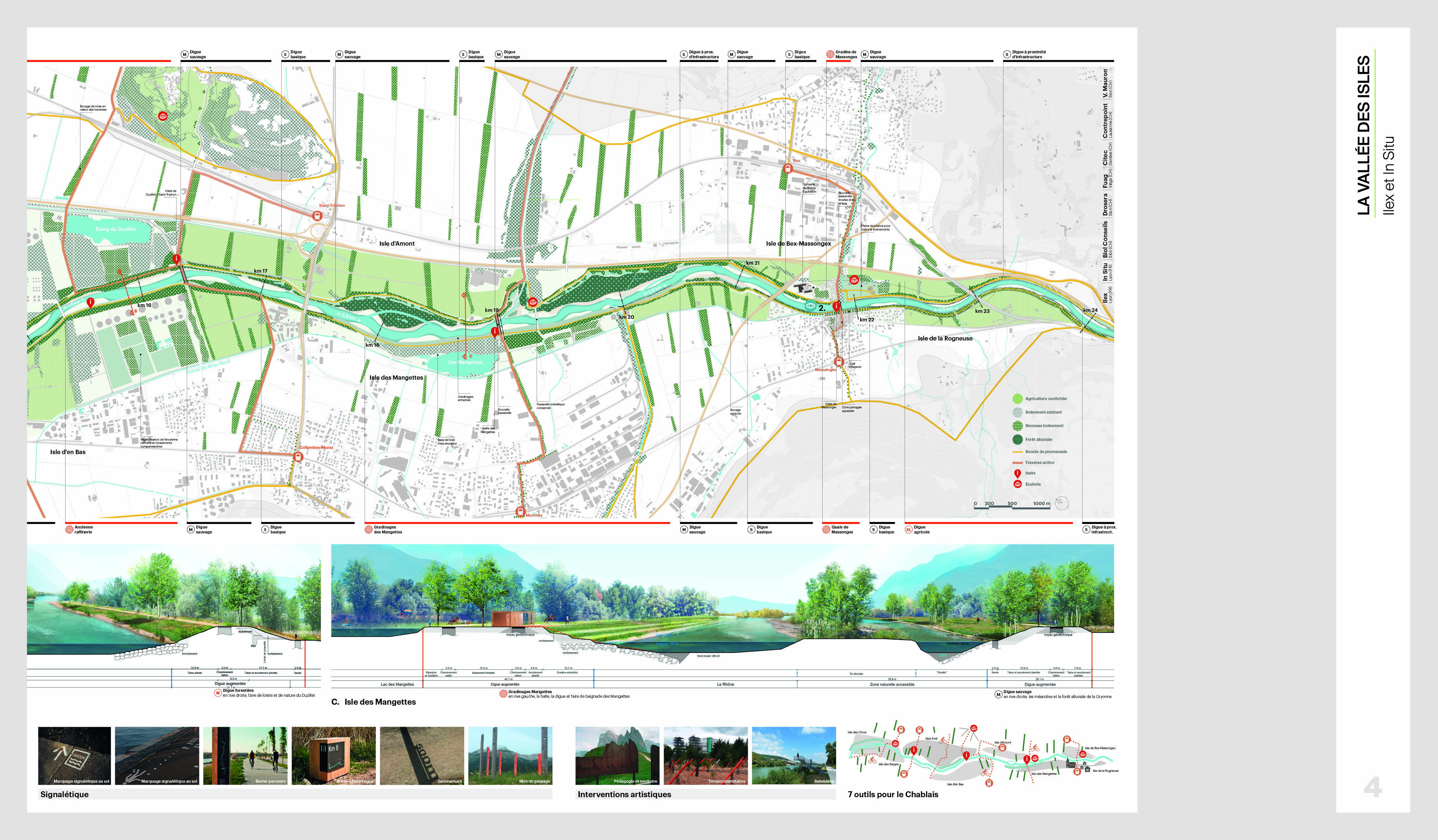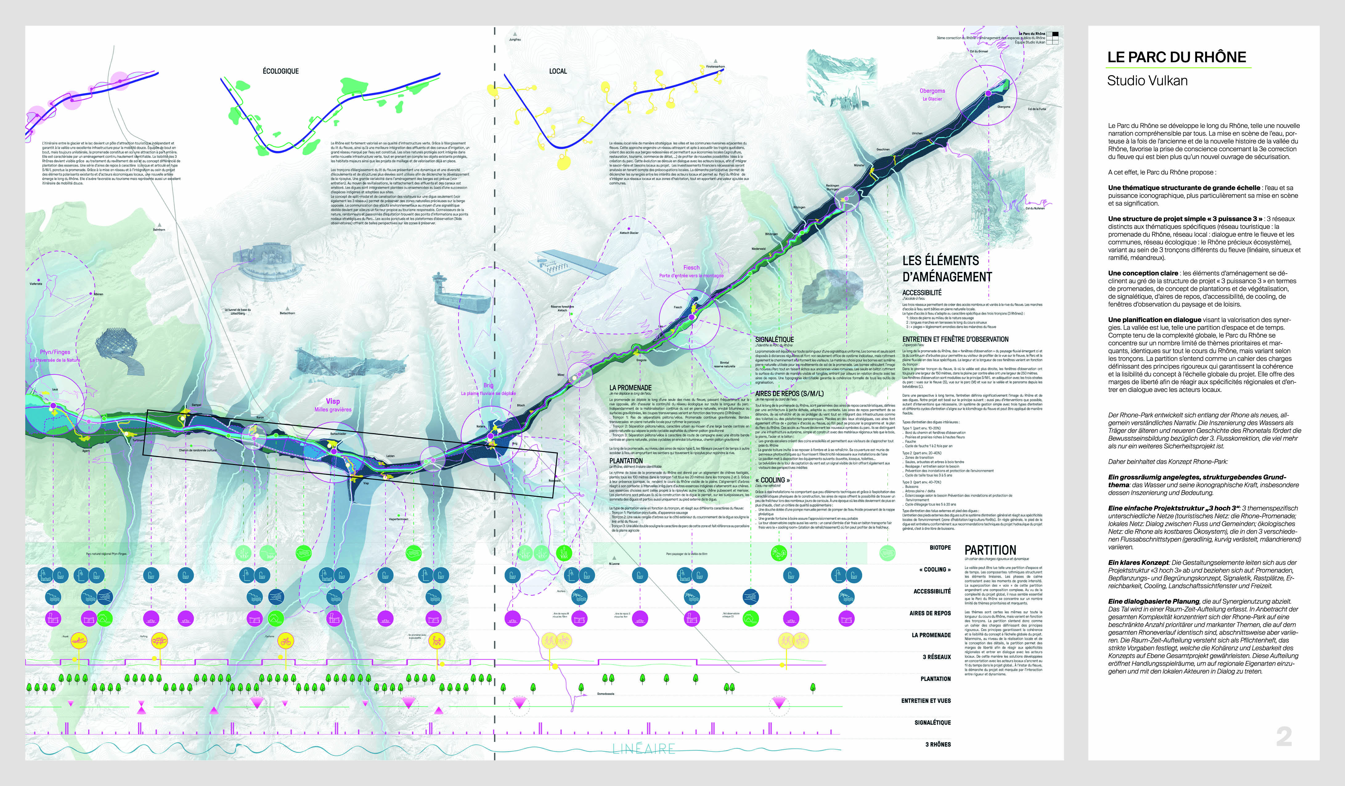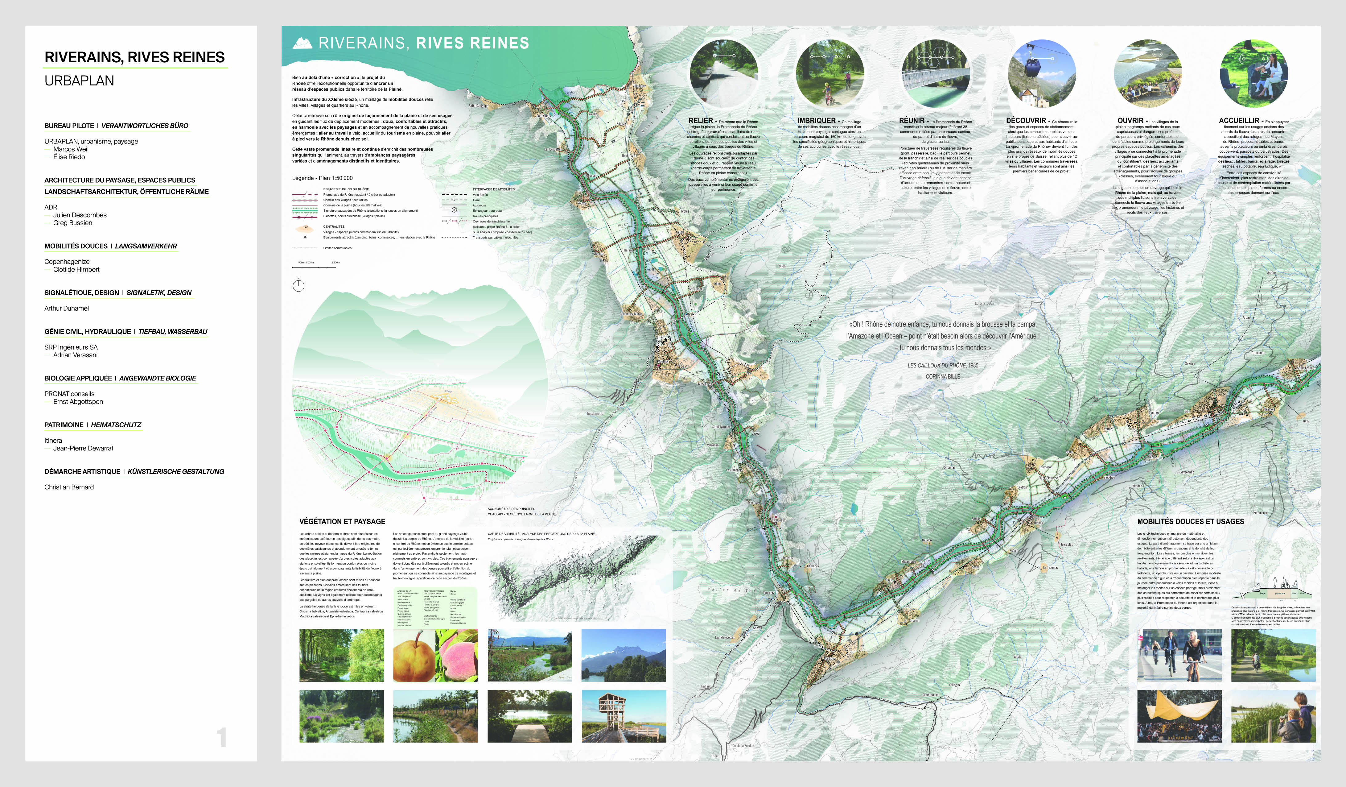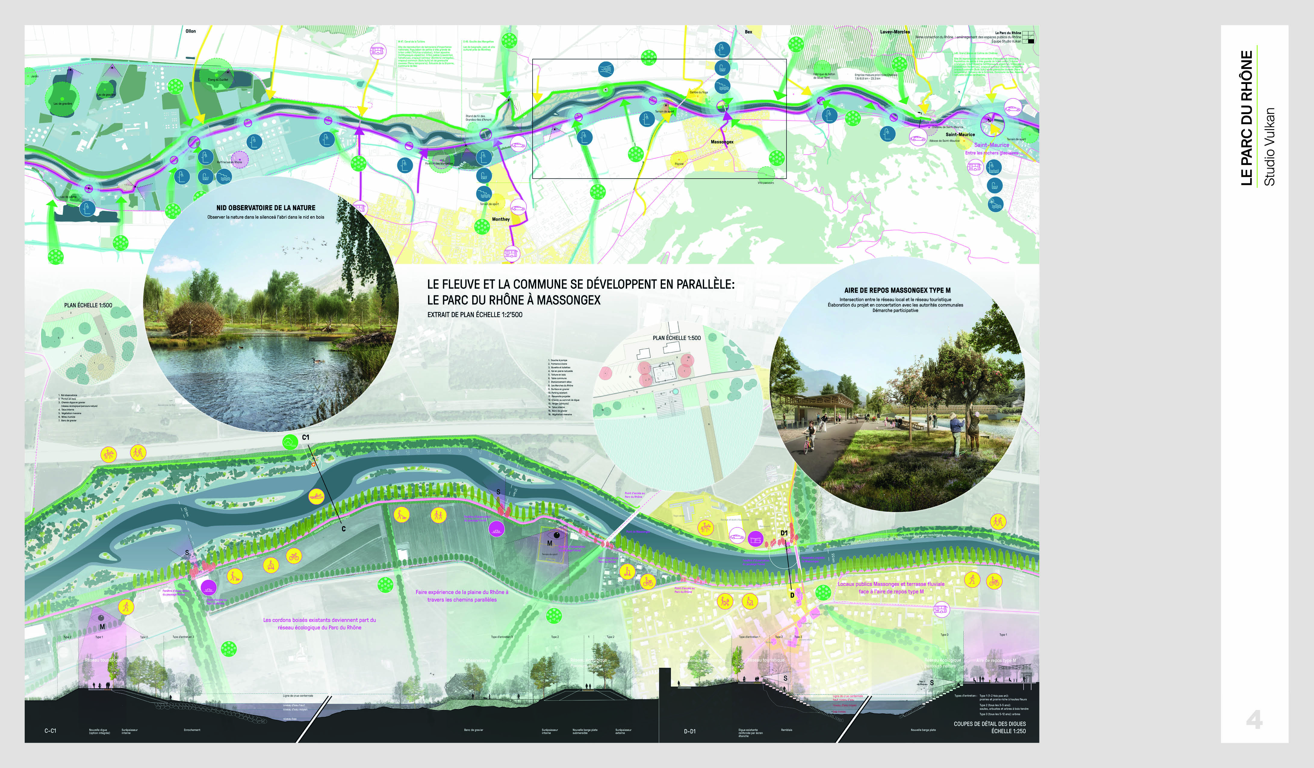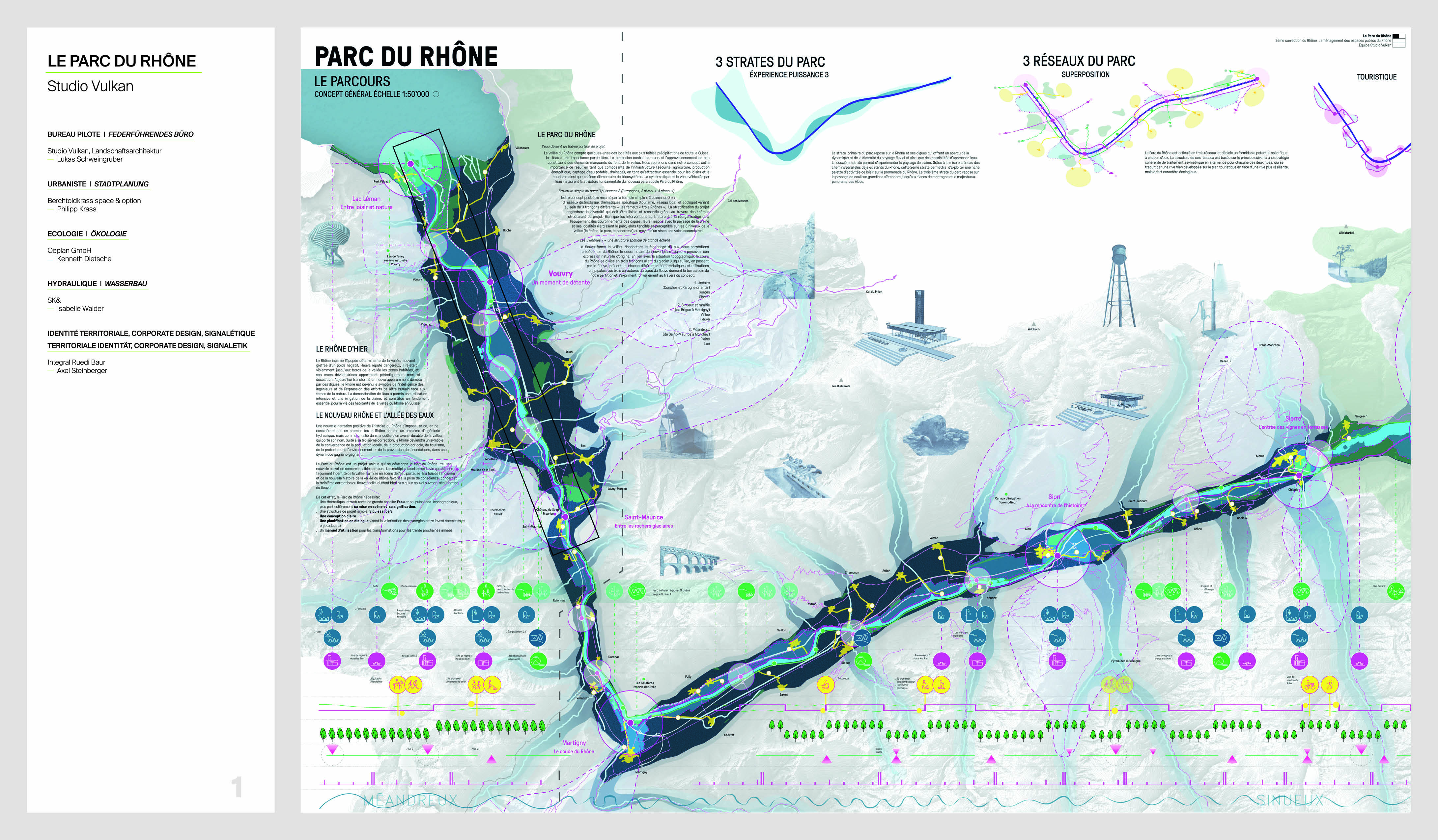 La vision paysagère proposée dépasse le cadre de la 3e correction du Rhône en intégrant des aménagements dans la plaine ainsi que sur les bords du fleuve.