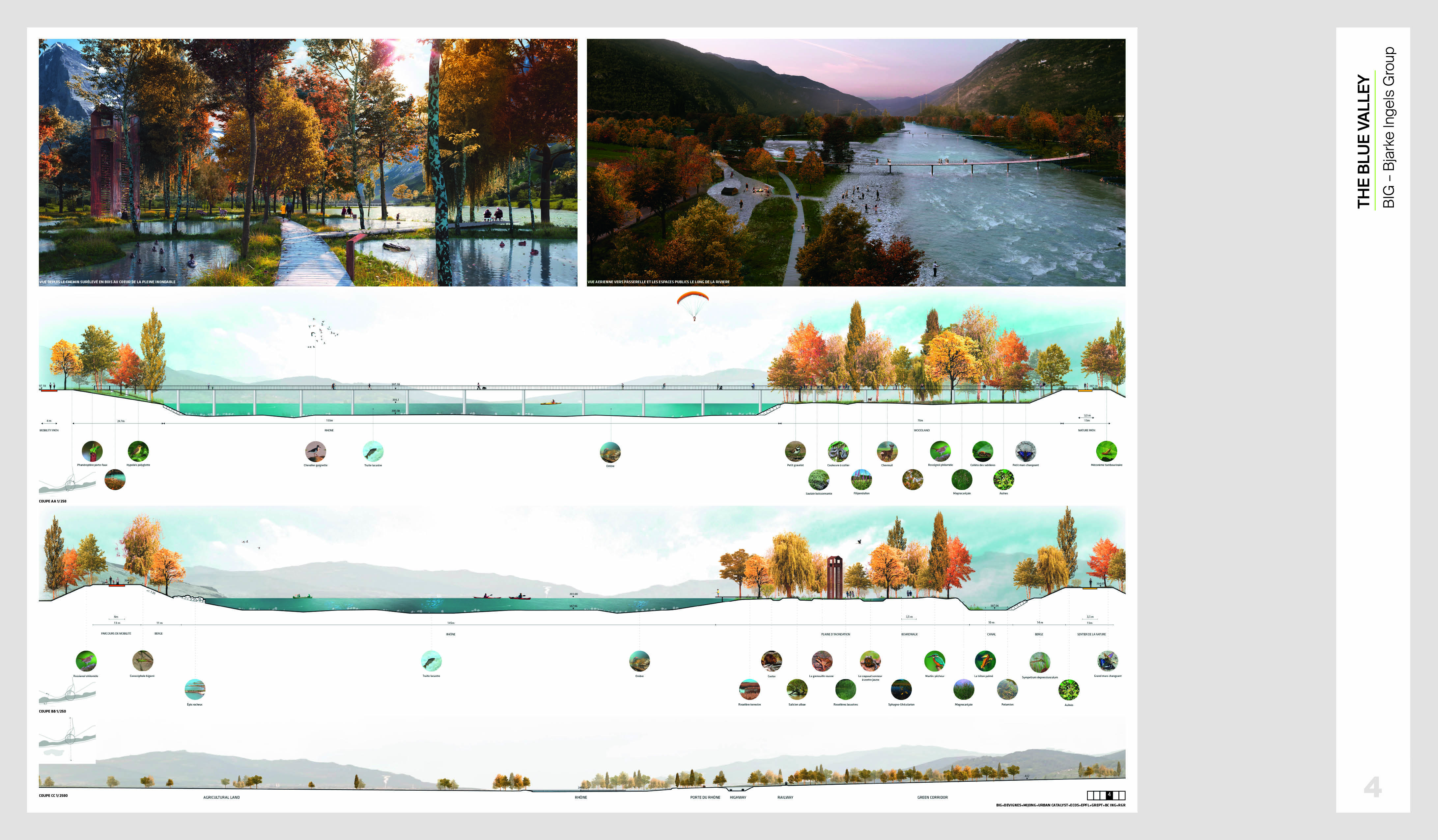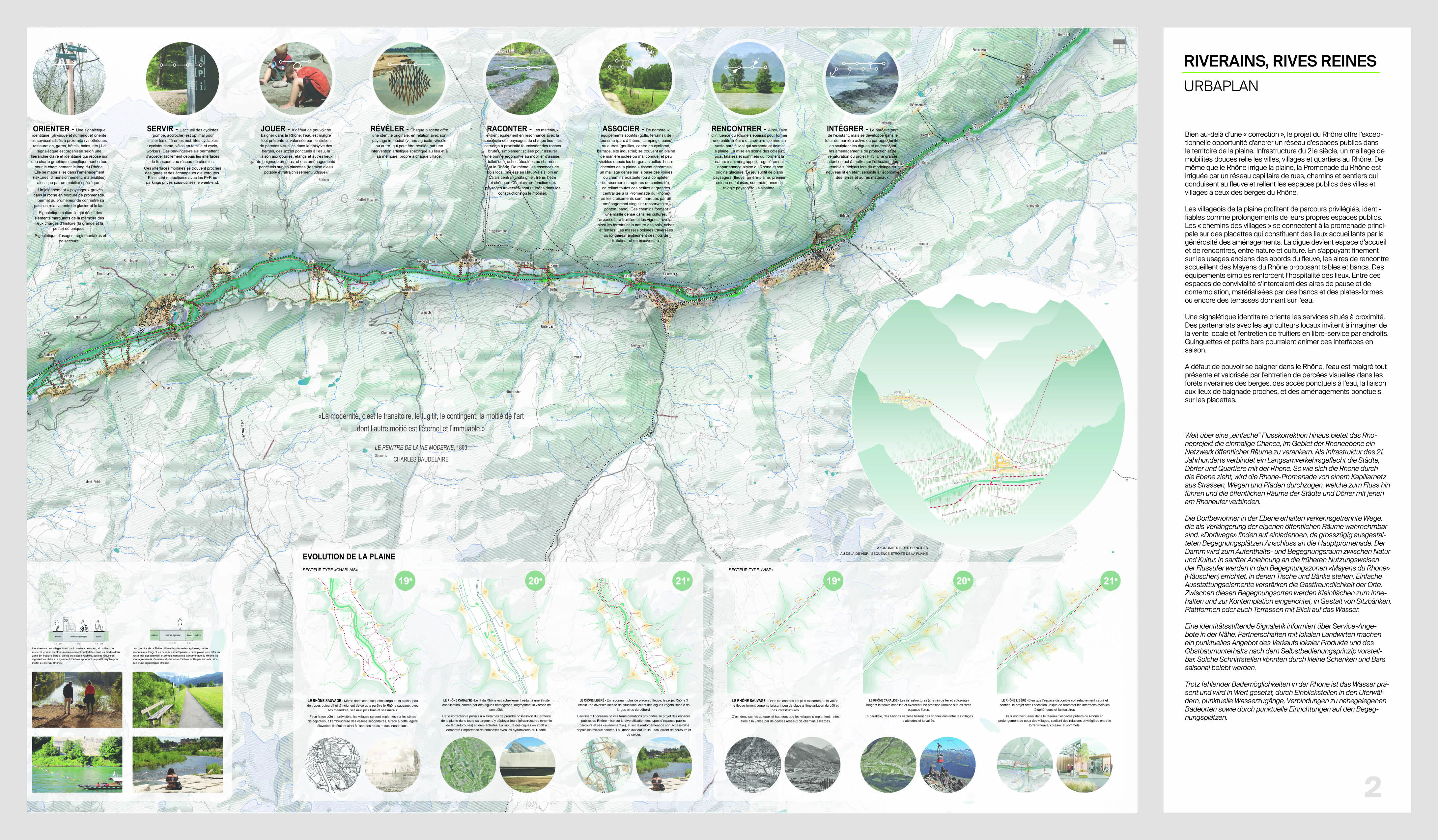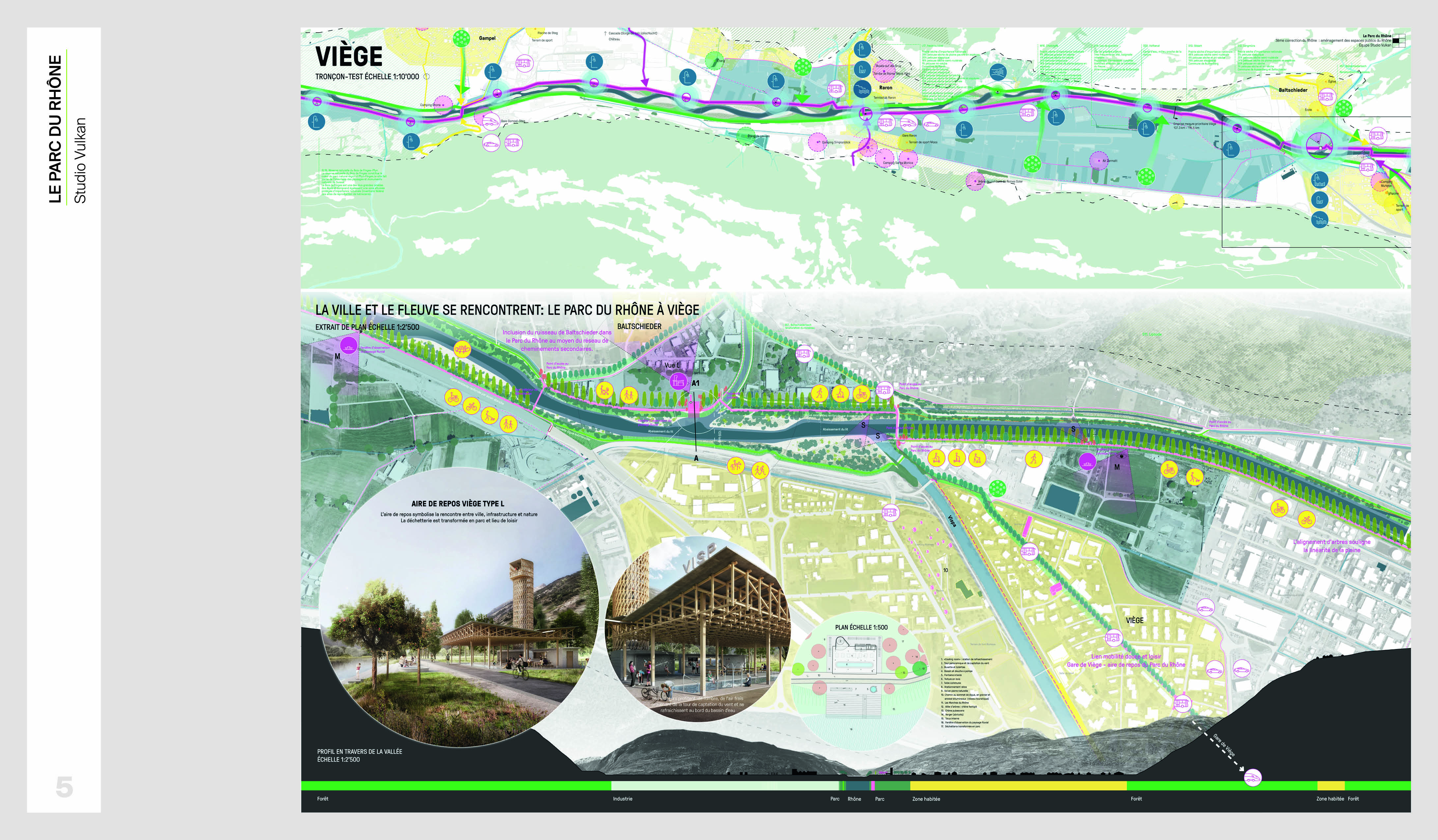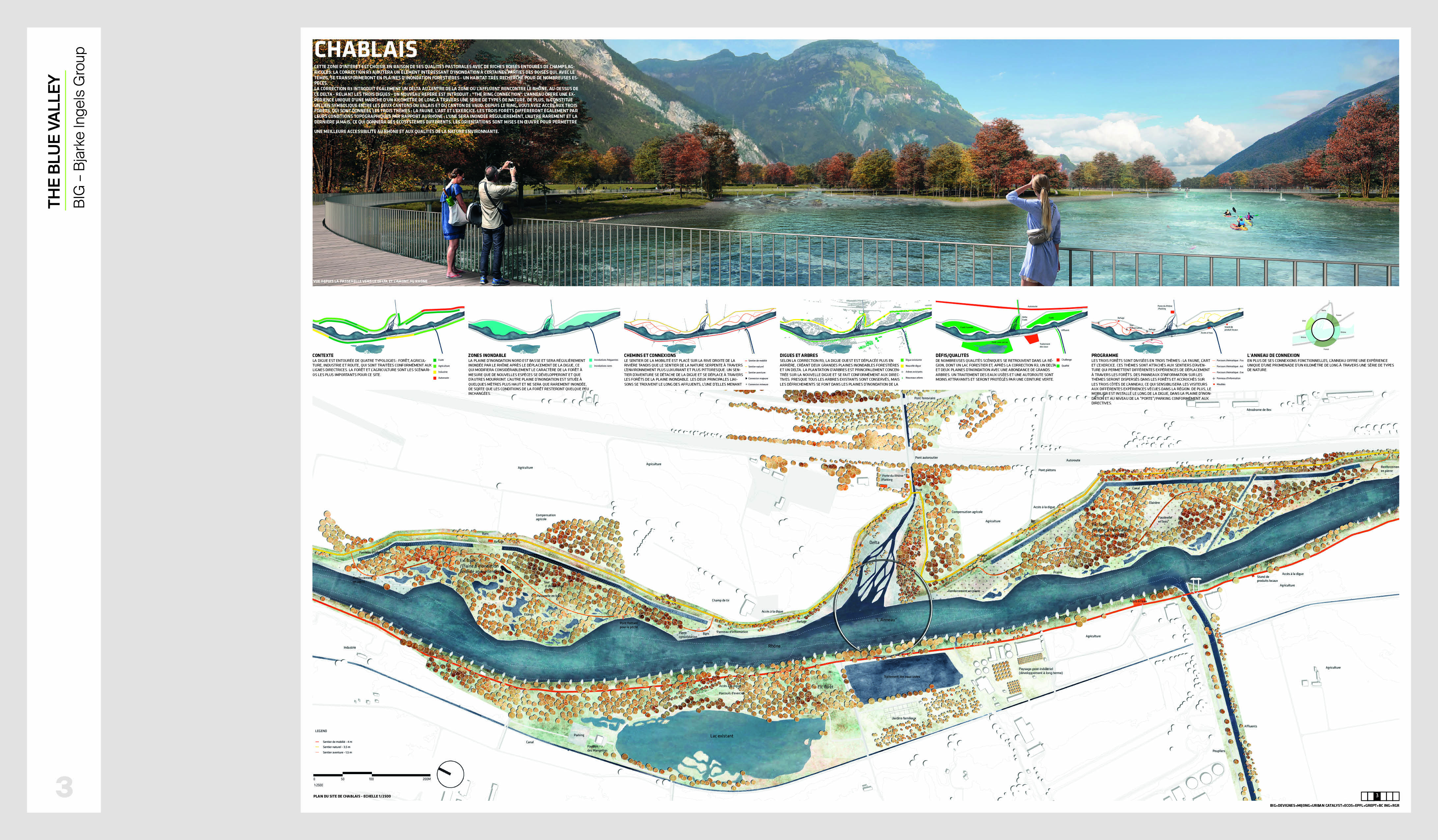 La vision paysagère proposée dépasse le cadre de la 3e correction du Rhône en intégrant des aménagements dans la plaine ainsi que sur les bords du fleuve.