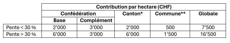 Conformément à l’annexe 6 de l’ordonnance sur les améliorations structurelles, le soutien dépend de la pente moyenne de la parcelle.