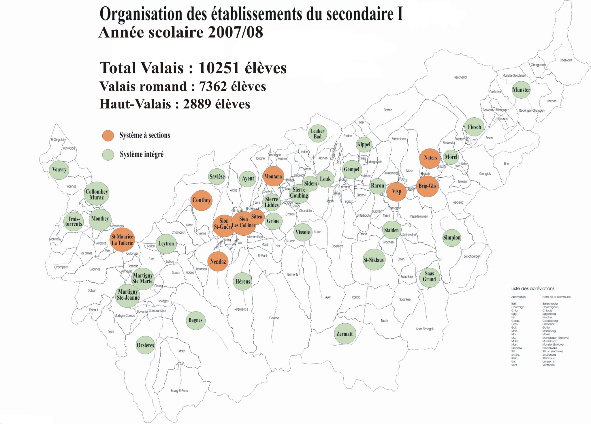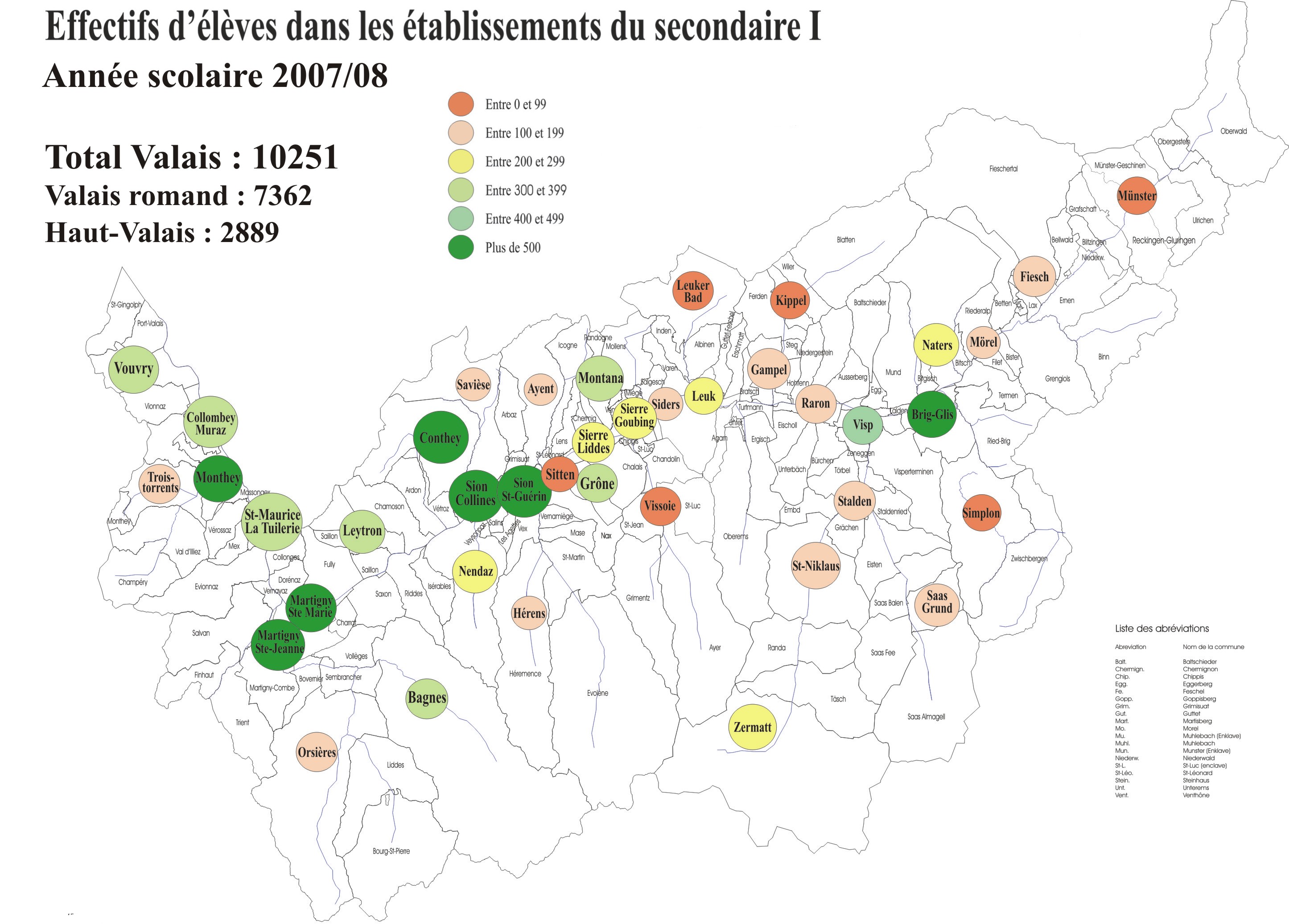 Les cartes ci-dessous mettent en évidence de façon graphique pour tous cycles d'orientation du canton les bassins versants (rattachement des communes aux CO), les structures qui les régissent (à niveau ou à section) ainsi que les effectifs d'élèves qui y sont scolarisés.