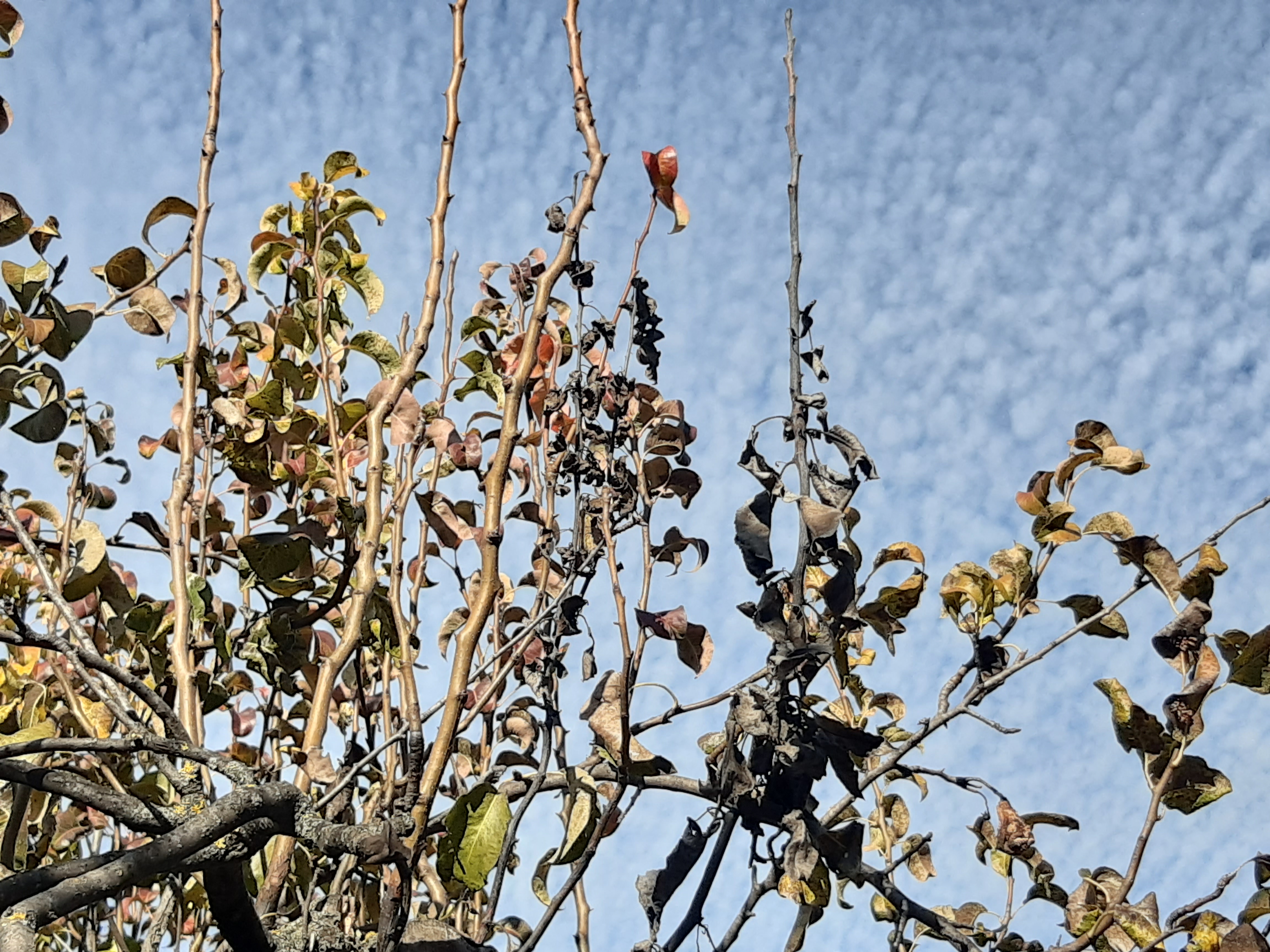 Toutes les parcelles atteintes de feu bactérien en 2025 doivent être contrôlées en automne pour les pommiers et en hiver pour les poiriers.