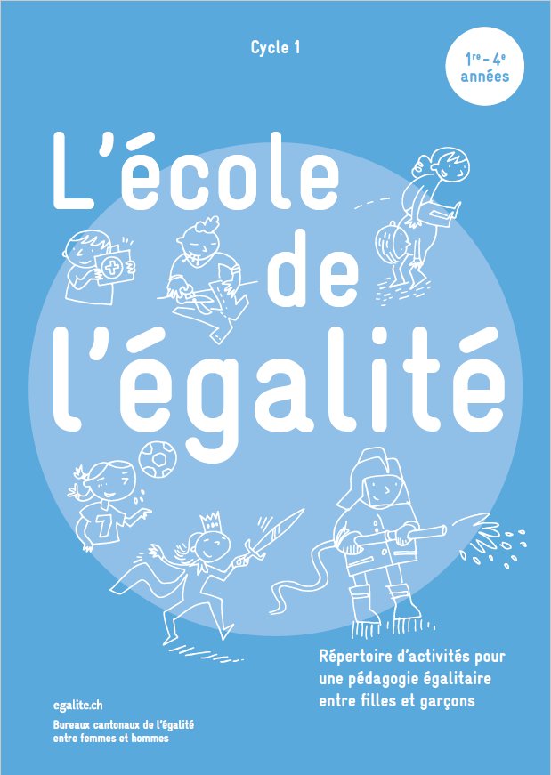 Ce travail a été accompagné par plusieurs départements cantonaux de l’instruction publique, ainsi que par des chercheuses et formatrices des Hautes écoles pédagogiques de Suisse romande, des enseignantes et enseignants actifs au sein de la scolarité obligatoire et des collaboratrices des bureaux romands de l’égalité. Aujourd’hui la première brochure sort de presse, destinée au Cycle 1 (1H à 4H). Elle permet d’introduire dès le plus jeune âge une réflexion sur les enjeux égalitaires. Les différentes séquences proposées, qui se conjuguent aux domaines disciplinaires et font appel à des thématiques du vivre-ensemble (famille, métiers, éducation à la citoyenneté, etc.), ont pour but de sensibiliser les enfants aux représentations et assignations genrées. Suivront dans le courant de l’année 2019 trois brochures complémentaires destinées aux Cycles 2 et 3, soit aux élèves de 5H à 11H.