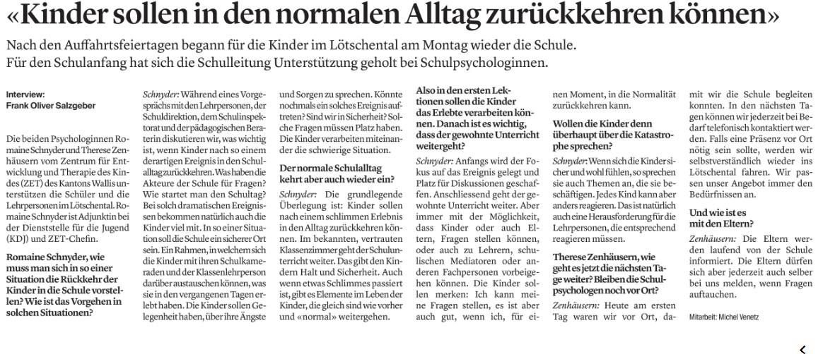 - Blatten VS - WB : Kinder sollen in den normalen Alltag zurückkehren können - 03.06.2025