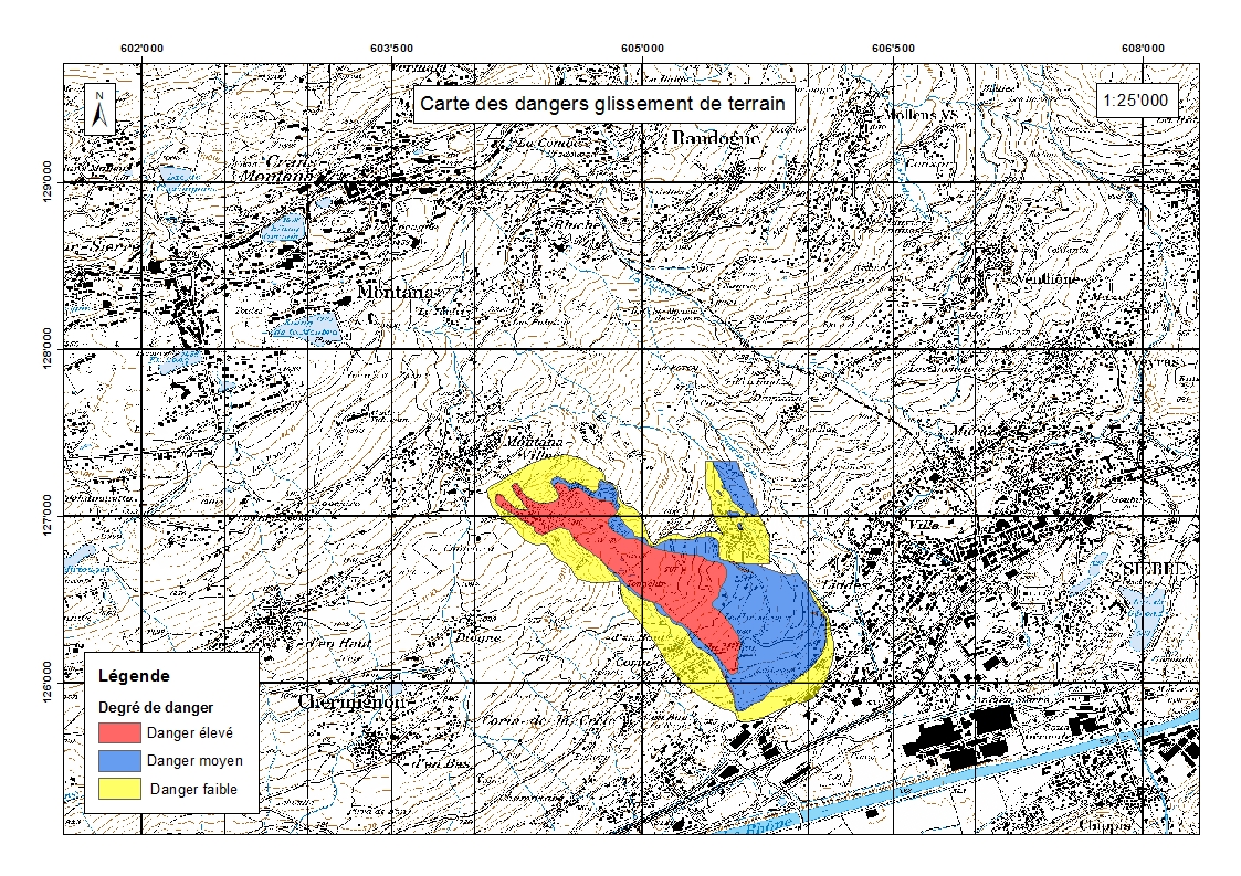 A chaque processus correspond une carte de danger spécifique. La carte synoptique des dangers revient à représenter tous les processus sur une seule carte.