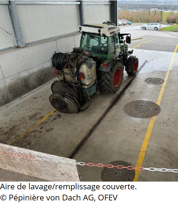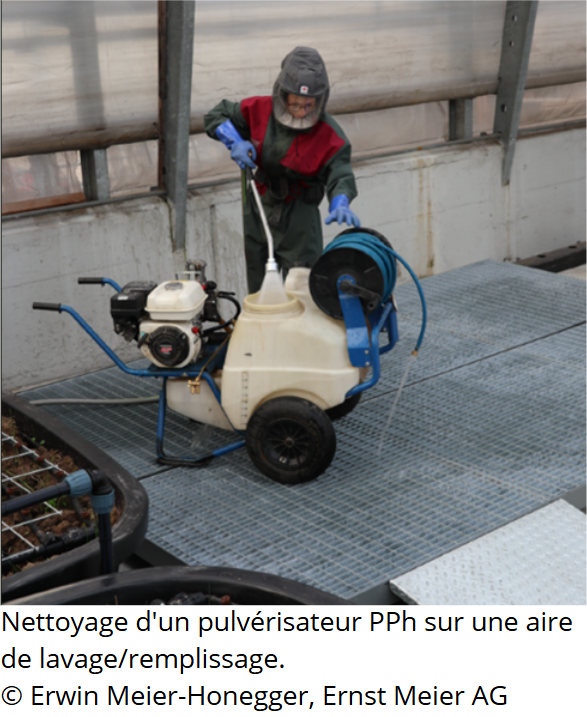 Afin de préserver nos cours d’eaux et éviter cette source de pollution, chaque acteur qui utilise des pulvérisateurs ou atomiseurs de PPh devrait employer une aire de remplissage et de lavage fixe ou mobile adaptée et conforme aux exigences de la protection des eaux.