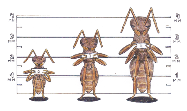 C’est une petite fourmi entièrement noire dont la taille des ouvrières varie de 2 à 4 mm.