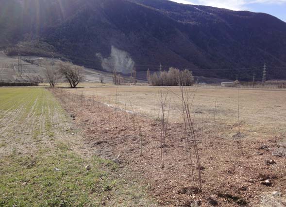En étroite collaboration avec les exploitants agricoles, 13 sites ont été choisis pour implanter les haies. La localisation des mesures a été avant tout dictée par des impératifs pragmatiques (souci de compatibilité avec les impératifs de culture du sol, approche bottom-up). Ces réalisations sont complémentaires aux aménagements potentiels des futures digues de protection contre les crues du Rhône.