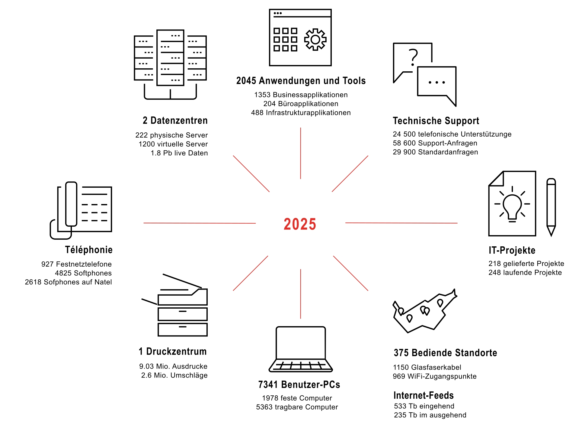 Sei es durch die Bereitstellung von Austrüstung, das für eine qualitativ hochwertige Arbeit notwendig ist, durch die Entwicklung von internen Tools oder durch öffentliche Anwendungen, diese Dienststelle setzt sich jeden Tag für die nachhaltige Entwicklung der Informatisierung des Staates Wallis ein.