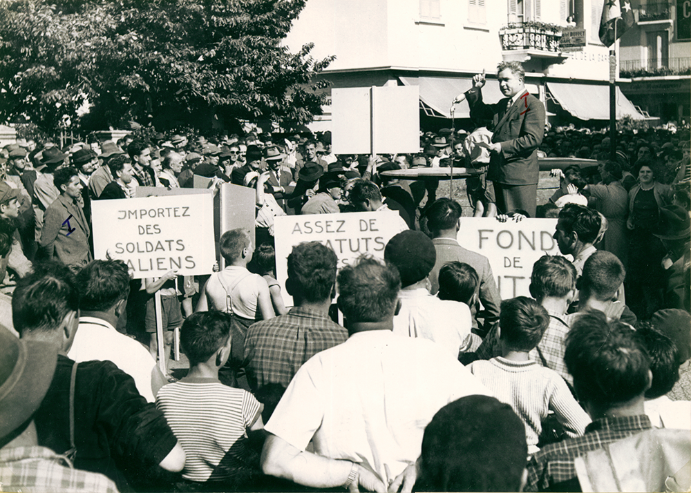 Titre : Emeutiers de Saxon au Tribunal de Martigny, 1953