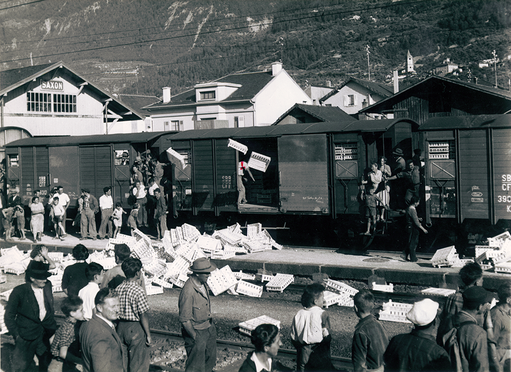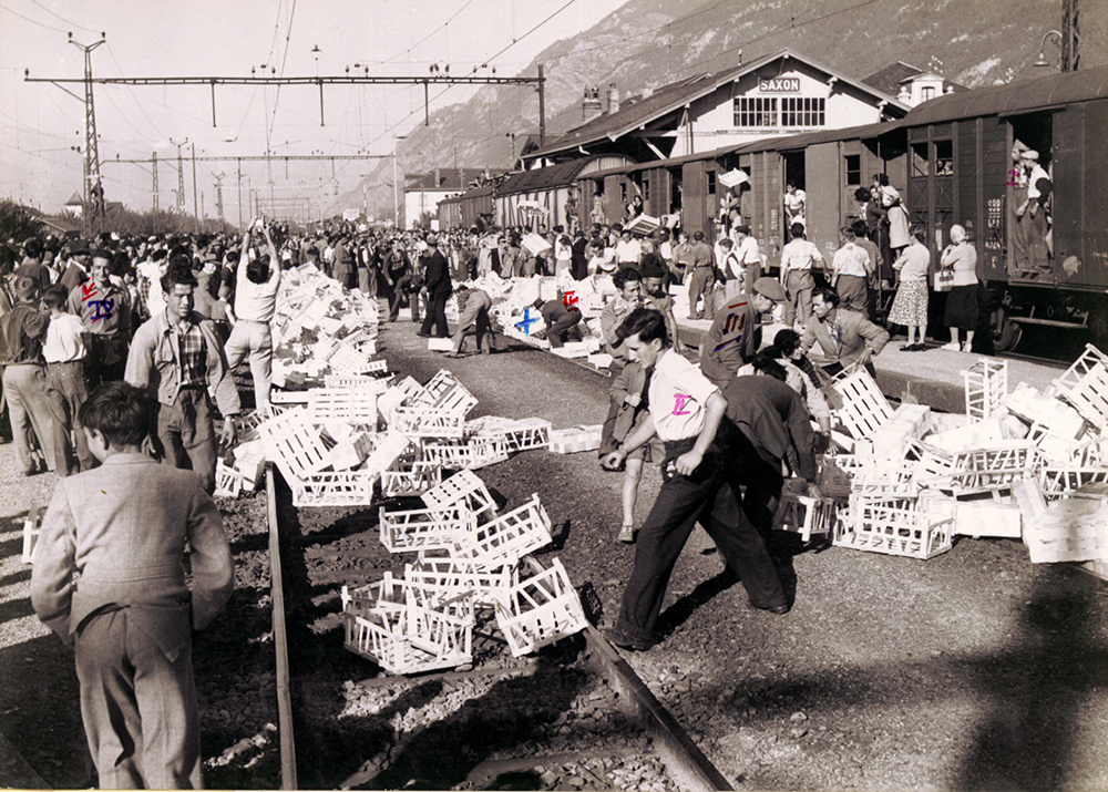 Pour lutter contre la mévente de leurs fruits et légumes et pour dénoncer les importations massives de produits étrangers, les paysans valaisans ont tenu le 7 août 1953 une grande manifestation qui a débouché sur une occupation des voies de communication et l'incendie de wagons en gare de Saxon.