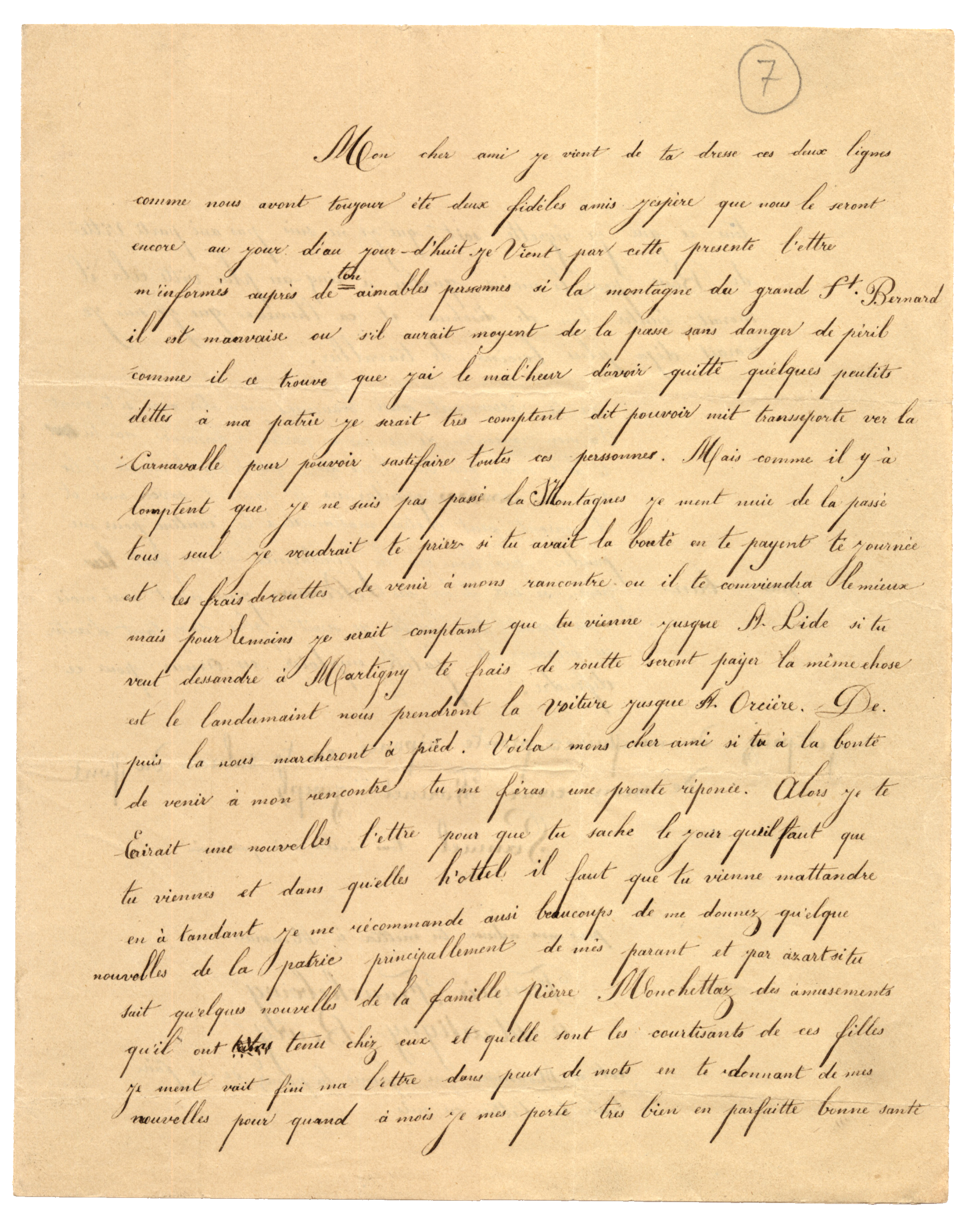 Lettre du président du dizain de Monthey Dubosson au conseiller d'Etat en charge du Département de justice et police, Troistorrents, 14 février 1846.