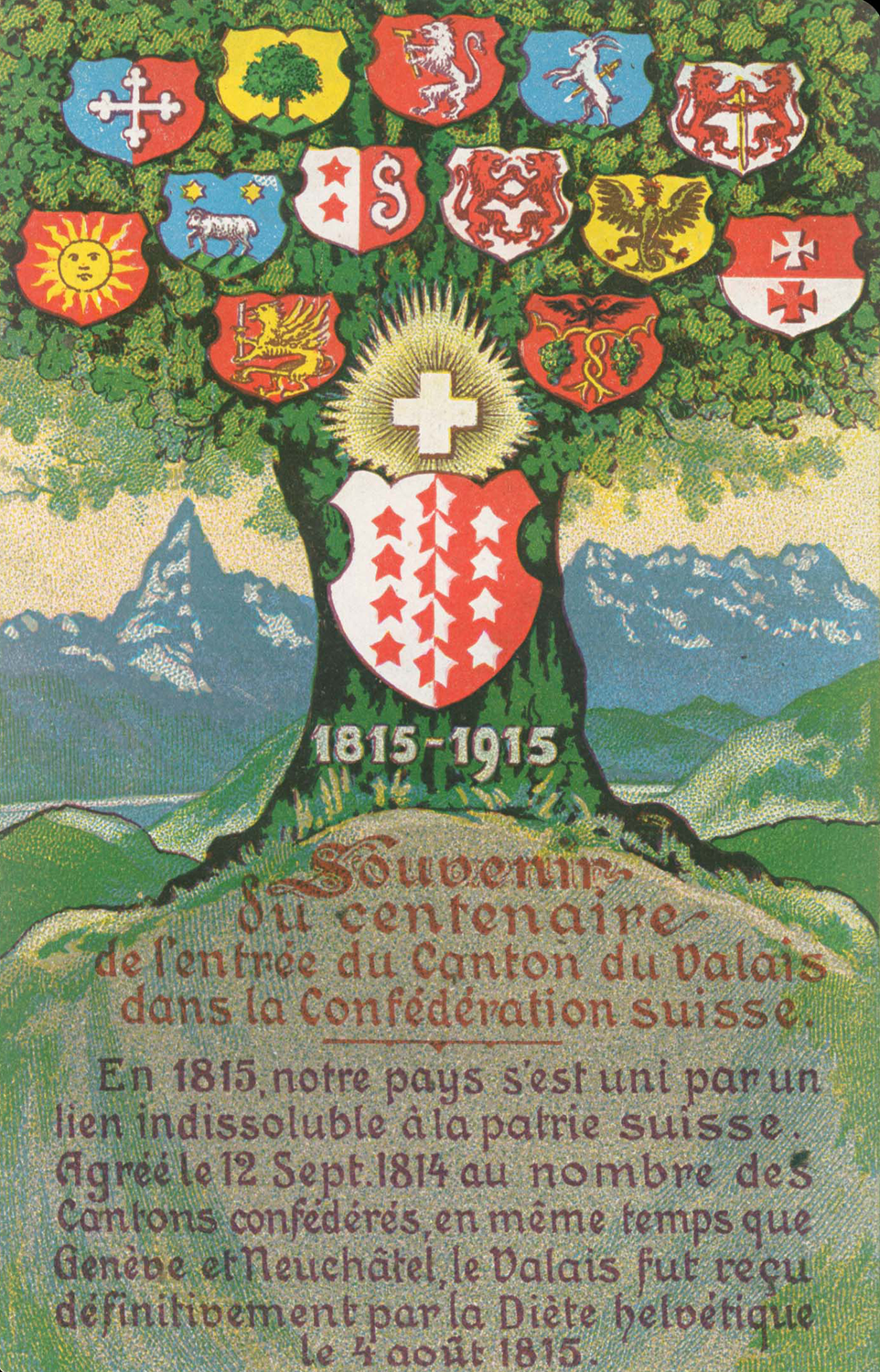 Carte commémorative du centenaire de l’entrée du Valais dans la Confédération