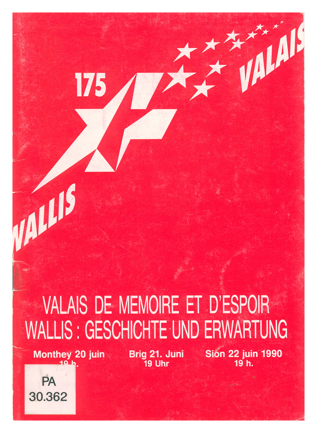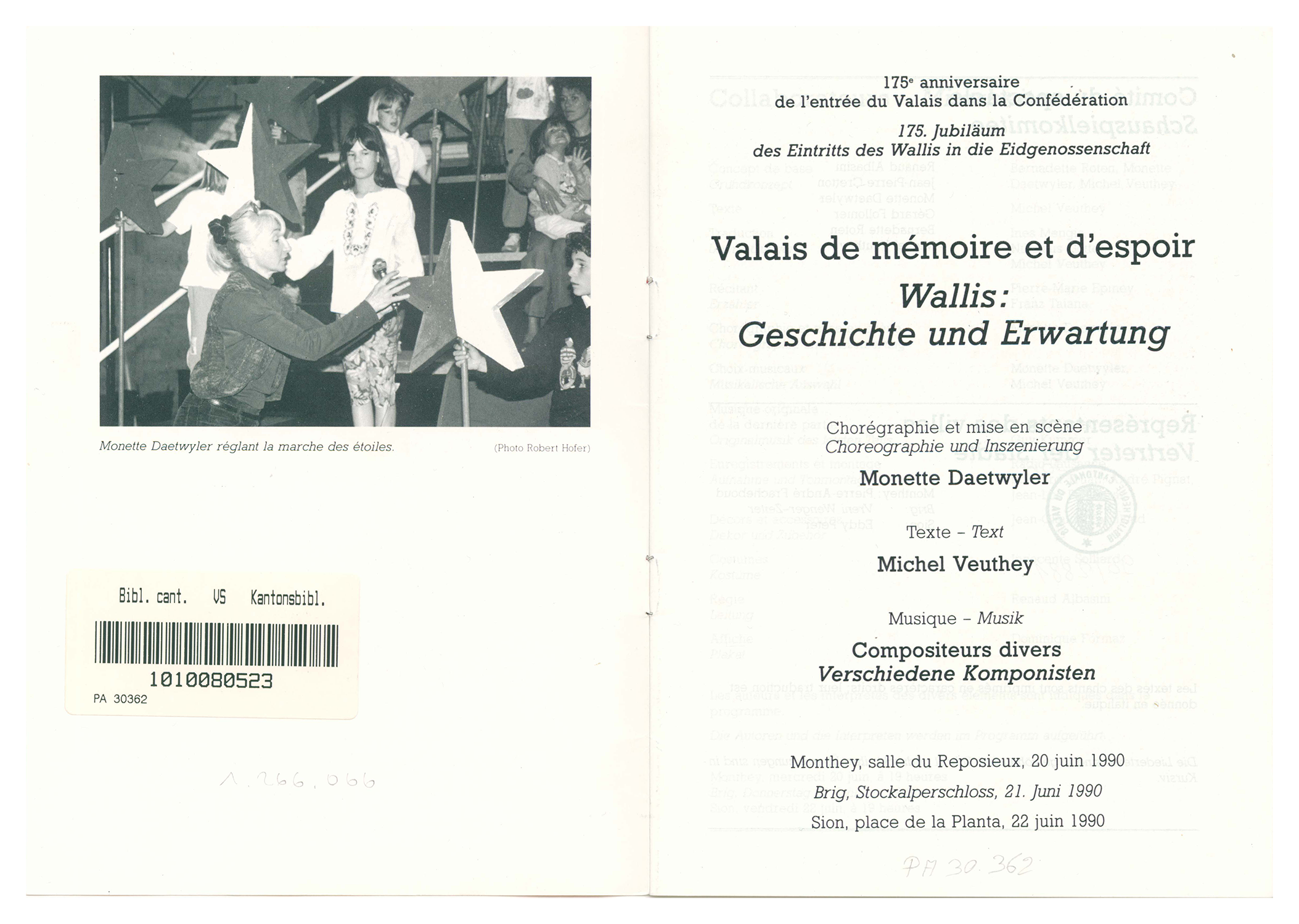 Brochures accompagnant diverses manifestations mises sur pied en 1990, ainsi que l’ouvrage Le Valais et vous / Das Wallis und Sie qui, grâce à l'apport d’une Enquête photographique organisée à l’échelle cantonale, propose un regard original sur le Valais, les Valaisannes et les Valaisans.