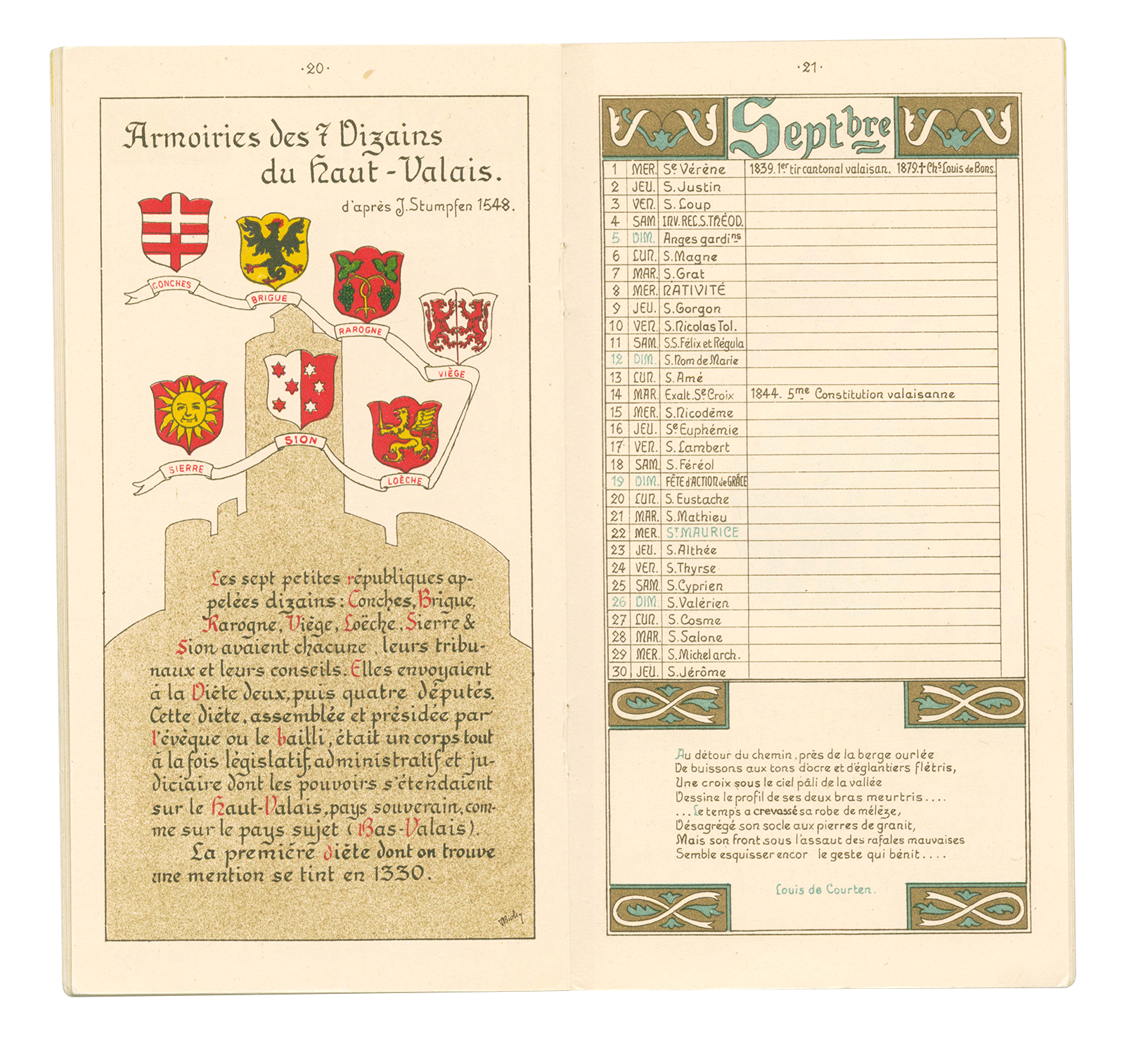 Titre : Carte commémorative du centenaire de l’entrée du Valais dans la Confédération