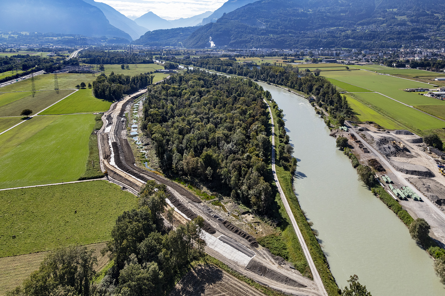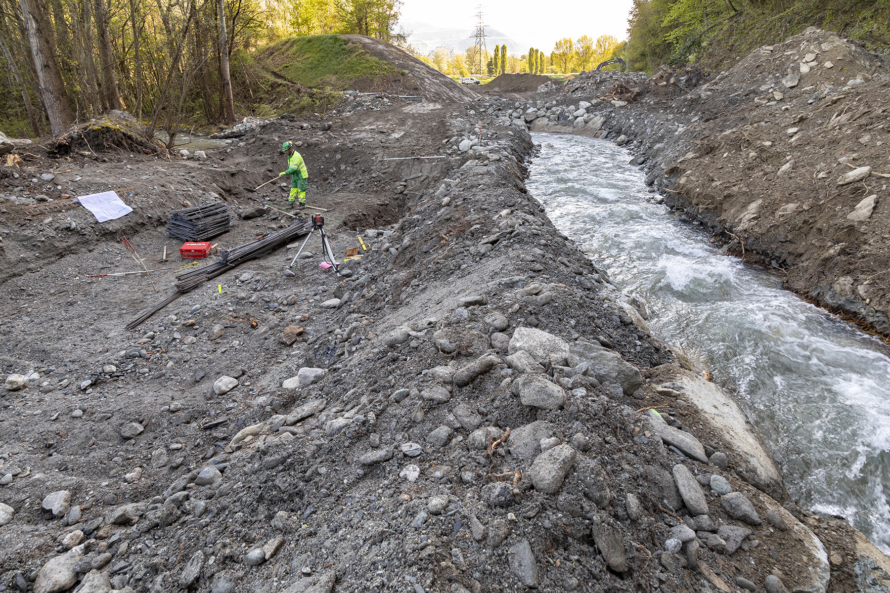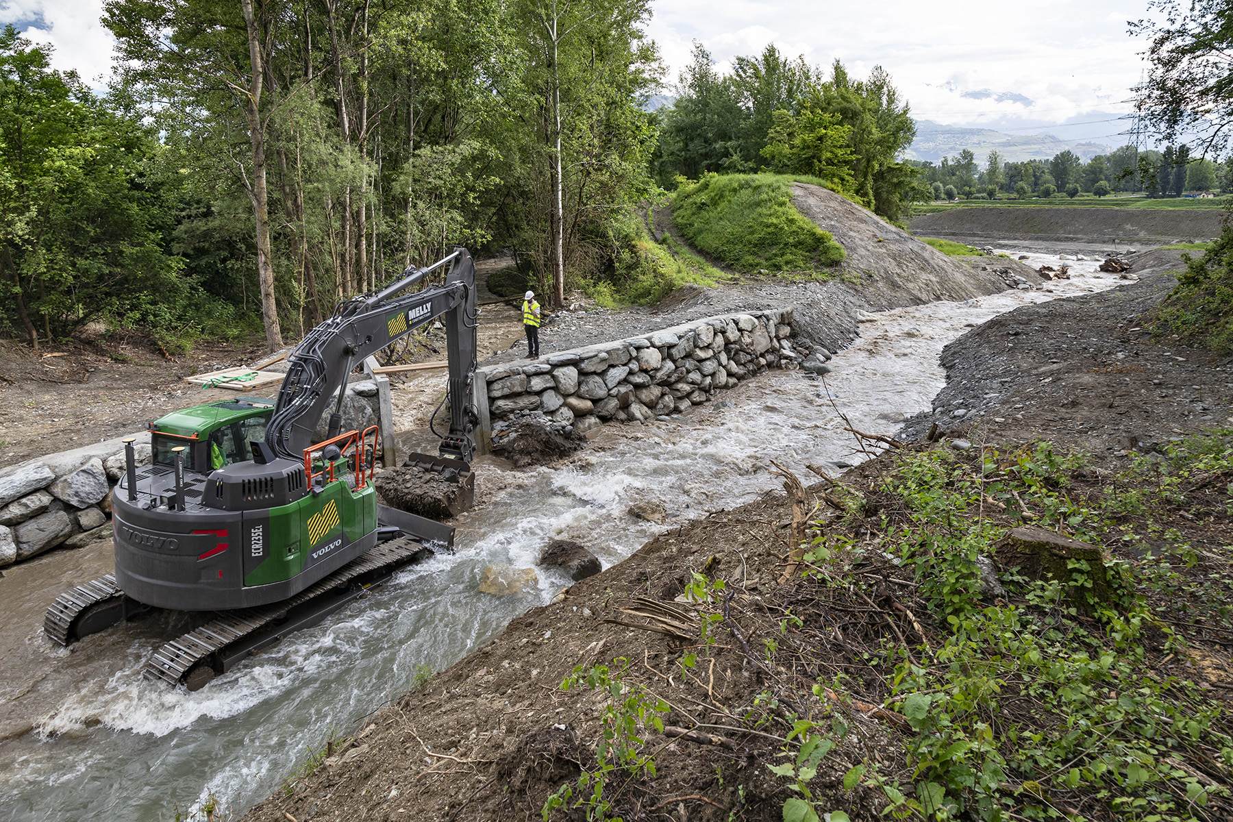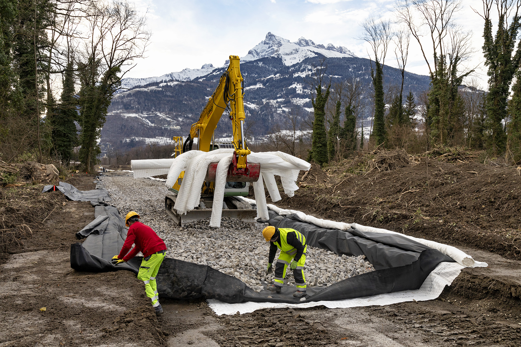 Le chantier de la nouvelle digue des Grandes Îles, sur les communes de Bex et Ollon, a démarré en septembre 2023 et s’est achevé fin 2025, respectant les délais annoncés.