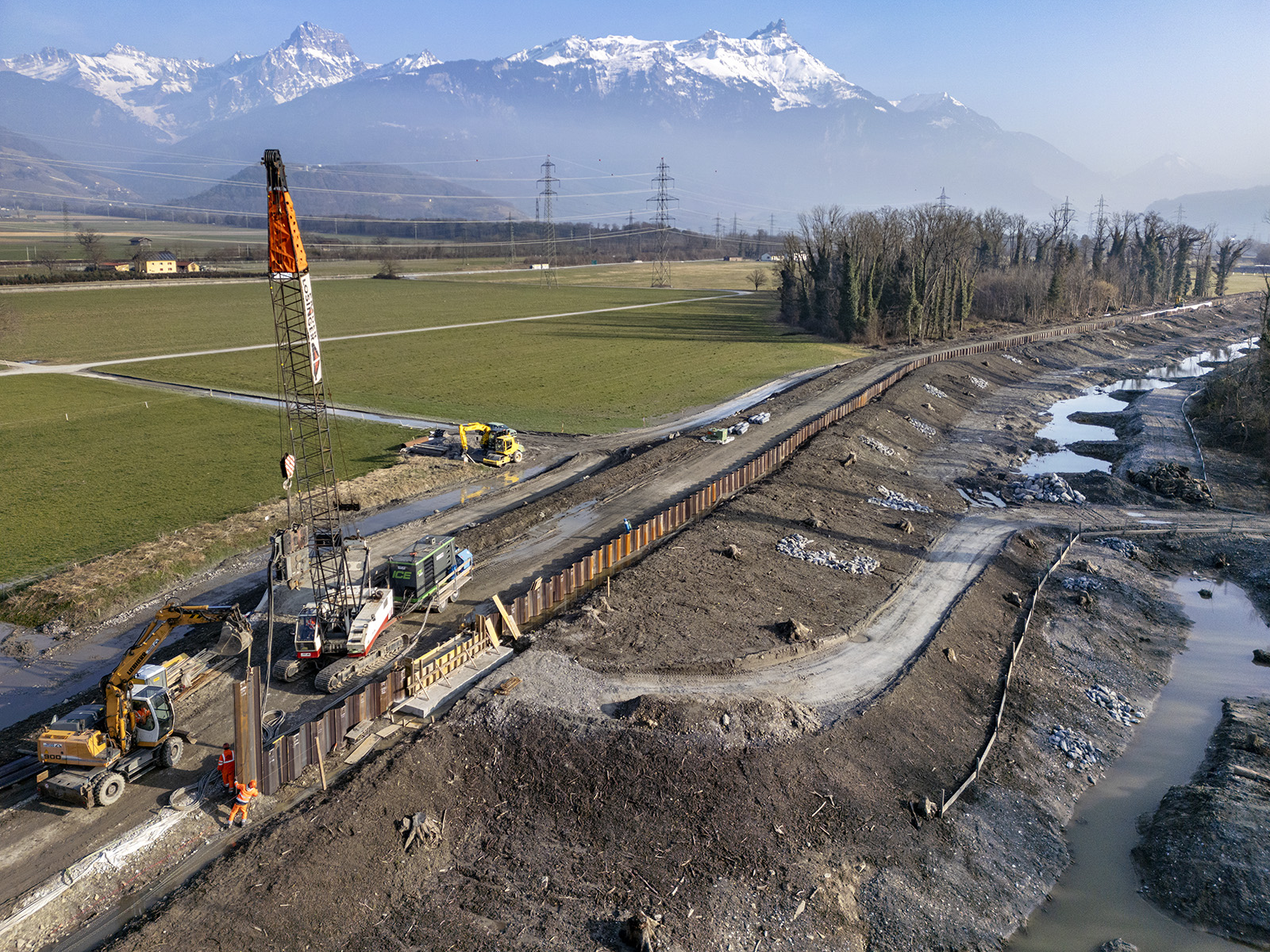Le chantier complet, qui s’étendra sur quatre ans pour se terminer à l’horizon 2029-2030, inclut l’assainissement d'une ancienne décharge, l’élargissement du Rhône, la consolidation de la digue valaisanne, ainsi que la construction d’une nouvelle digue côté vaudois. La revitalisation du Grand Canal et de l’étang de Versvey est également prévue.
