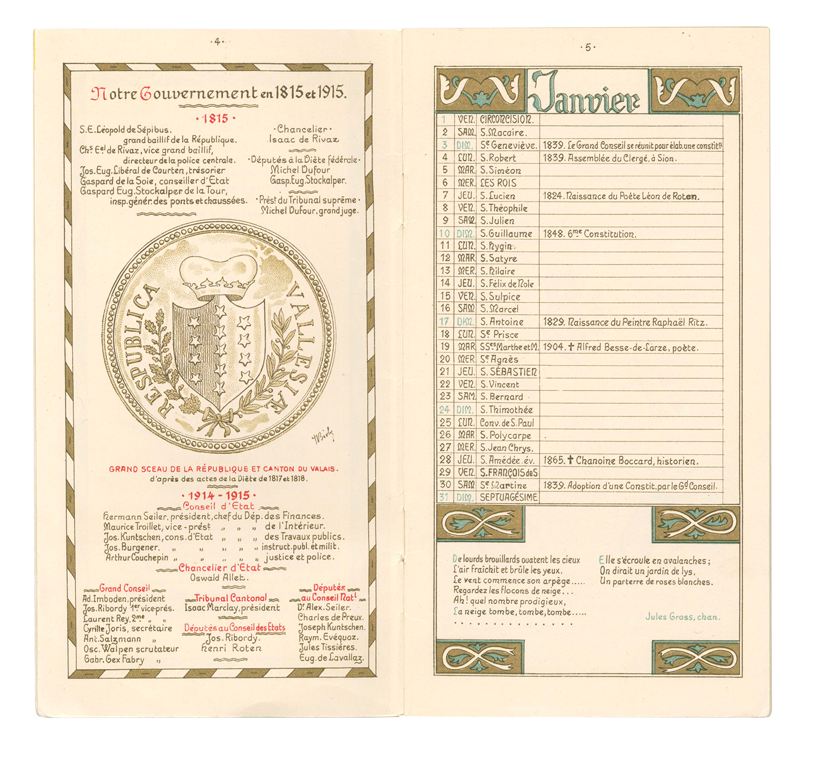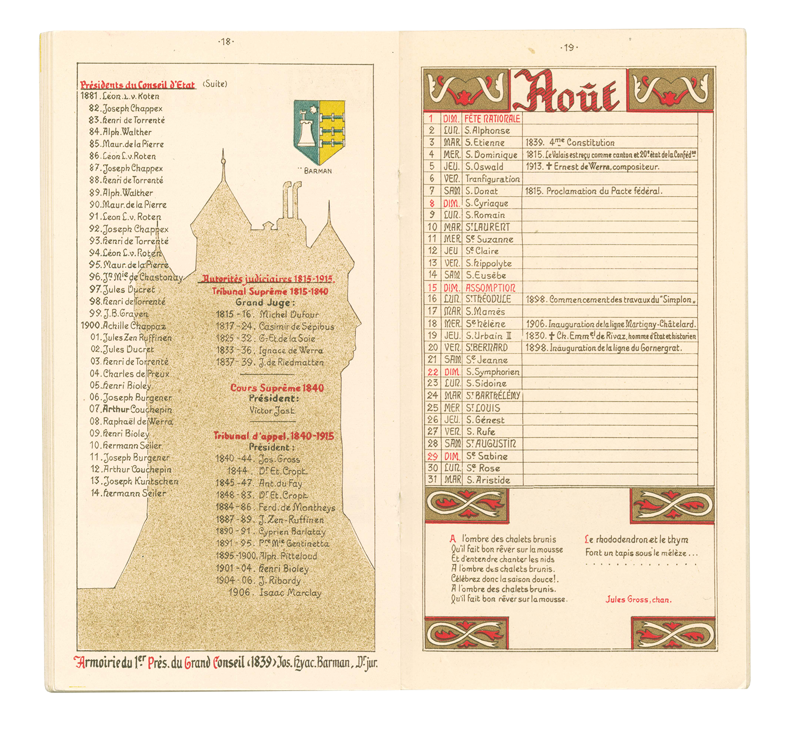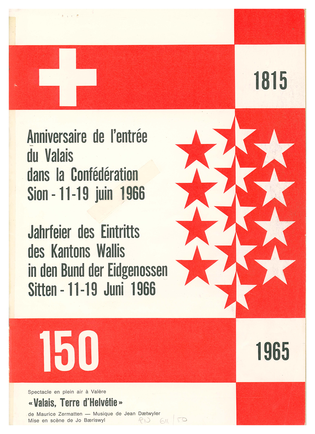 Titre : Carte commémorative du centenaire de l’entrée du Valais dans la Confédération