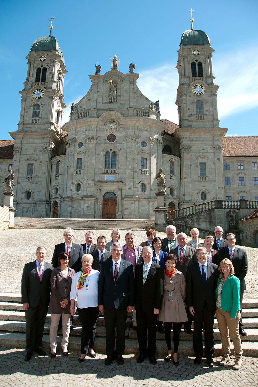 (IVS).- Le gouvernement valaisan incorpore a été reçu jeudi 10 et vendredi 11 avril 2014 par le Conseil d’Etat du canton de Schwytz. La visite d’une entreprise internationale d’expédition ainsi qu’une immersion dans l’abbaye territoriale d’Einsiedeln ont notamment permis de fructueux échanges entre partenaires confédéraux. Cette visite s’inscrivait dans le cadre des rencontres traditionnelles et périodiques entre exécutifs cantonaux. Les Schwytzois s’étaient déplacés en septembre 2013 en Valais.
