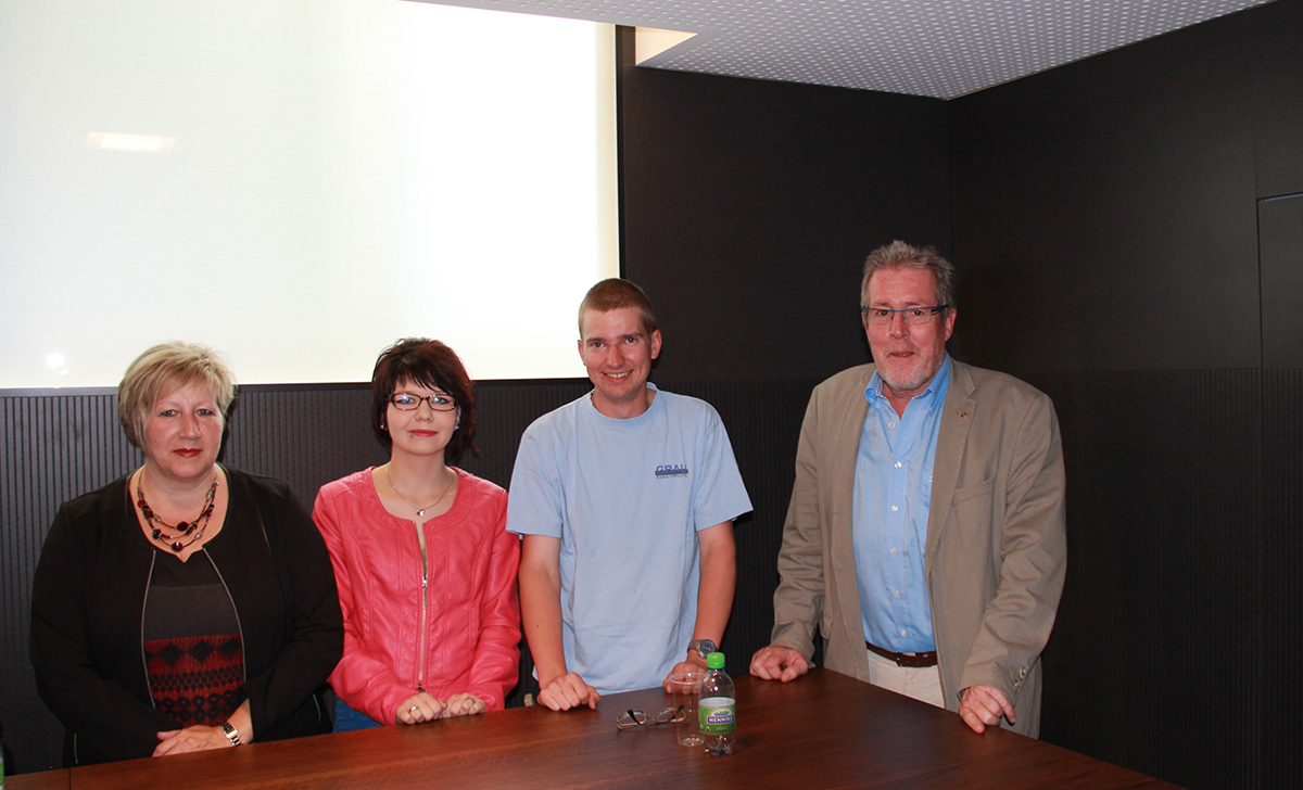 Noémie Genolet et Yoann Schmid entourés de leurs maîtres d'apprentissage, Philomène Zufferey et Philippe Grau