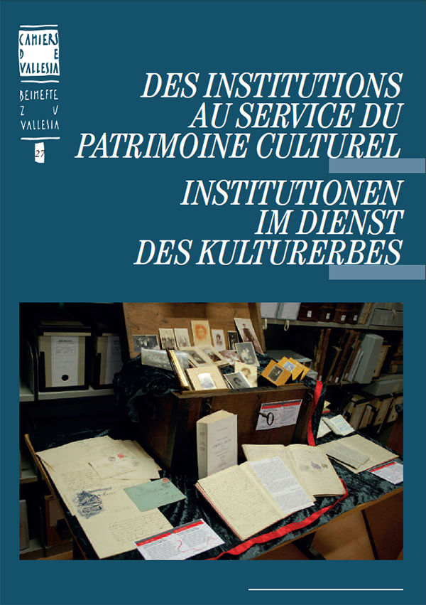 (IVS).- A l’occasion du départ à la retraite de quatre directeurs d’institutions culturelle de l’Etat du Valais, les Archives cantonales sortent de presse le 27e Cahier de Vallesia. Intitulé «Des Institutions au service du patrimoine culturel», la nouvelle publication propose un bilan, sur un quart de siècle, du développement des institutions culturelles valaisannes, doublé d’un hommage collectif aux quatre dirigeants sortants.