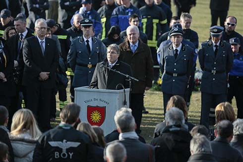 (IVS).- Les autorités sierroises et valaisannes ainsi qu’une délégation belge et hollandaise ont inauguré un espace commémoratif à la mémoire des victimes de l’accident de car du 13 mars 2012. La cérémonie publique s’est déroulée vendredi 13 mars sur le site de Géronde en présence des familles des victimes, du premier ministre de la Belgique, Charles Michel, du secrétaire d’Etat pour l’enseignement des Pays-Bas, Sander Dekker, de la présidente de la Confédération, Simonetta Sommaruga, du président du Conseil d’Etat valaisan, Jean-Michel Cina, des conseillers d’Etat Jacques Melly et Esther Waeber-Kalbermatten et du président de la Ville de Sierre, François Genoud. Etaient également présents Kris Peeters, premier vice-premier ministre et ministre de l’emploi, de l’économie et des consommateurs, Jan Jambon, vice-premier ministre de Belgique et ministre de la sécurité et de l’intérieur, Jacqueline Galant, ministre de la mobilité, Bart Tommelein, secrétaire d’Etat ainsi que Peter Vanvelthoven et Kris Verduyckt, respectivement bourgmestre et échevin de Lommel.