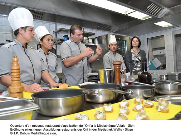 Au début 2013, le Service cantonal de la culture a invité plusieurs institutions en charge de la formation ou de la réinsertion professionnelles à formuler une offre pour la mise sur pied et la gestion d’un futur restaurant du centre culturel qui abritera la Médiathèque Valais et les Archives de l’Etat. La proposition d’atelier-restaurant soumise par l’Organisation romande d’intégration et de formation professionnelle (Orif) a été alors retenue. L’expérience et l’excellence des structures d’application que l’Orif gère ailleurs en Suisse romande - le restaurant «Petits Pois Carottes» à Conthey en Valais ou «Sur le Pont» dans le quartier de La Praille à Genève, notamment – ont été déterminantes dans le choix.