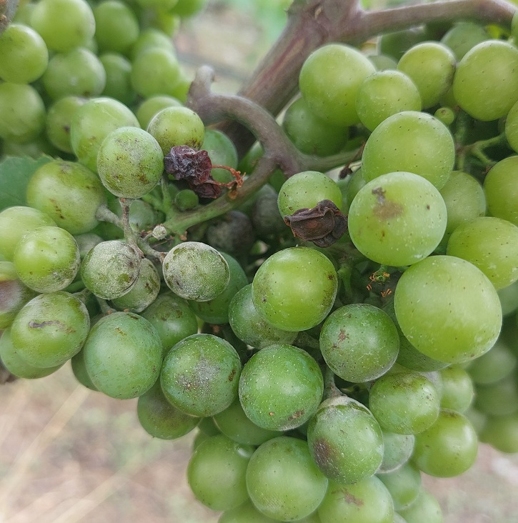 En viticulture, la fin des traitements est justifiée dans les parcelles exemptes de maladies sur grappe. Toutefois, si de l’oïdium encore actif est visible sur certains cépages qui n’ont pas encore débuté la véraison ou dont les baies n’ont pas encore complètement tourné, alors un dernier traitement est recommandé avant la mi-août.