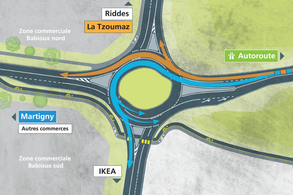 Um dem erhöhten Verkehrsaufkommen gerecht zu werden, das vom Wachstum der Gewerbezonen Babioux Nord und Sud in Riddes ausgeht, wurde die Mobilitätsinfrastruktur angepasst.