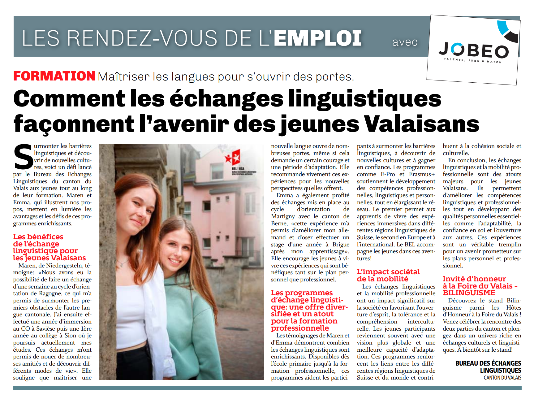 News 25.09.2024 Echanges linguistiques Maîtriser les langues pour s'ouvrir des portes Comment les échanges linguistiques façonnent l'avenir des jeunes Valaisans
