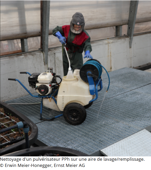 L’article 47a de l’ordonnance fédérale sur la protection des eaux (OEaux), en vigueur depuis le 1er février 2023, impose aux cantons de contrôler, au moins une fois tous les quatre ans, les lieux où les pulvérisateurs de produits phytosanitaires (PPh) sont remplis ou nettoyés par des utilisateurs professionnels ou commerciaux. Cette mesure vise à réduire les risques de pollution des eaux de surface et des eaux souterraines lors de la manipulation de ces produits.