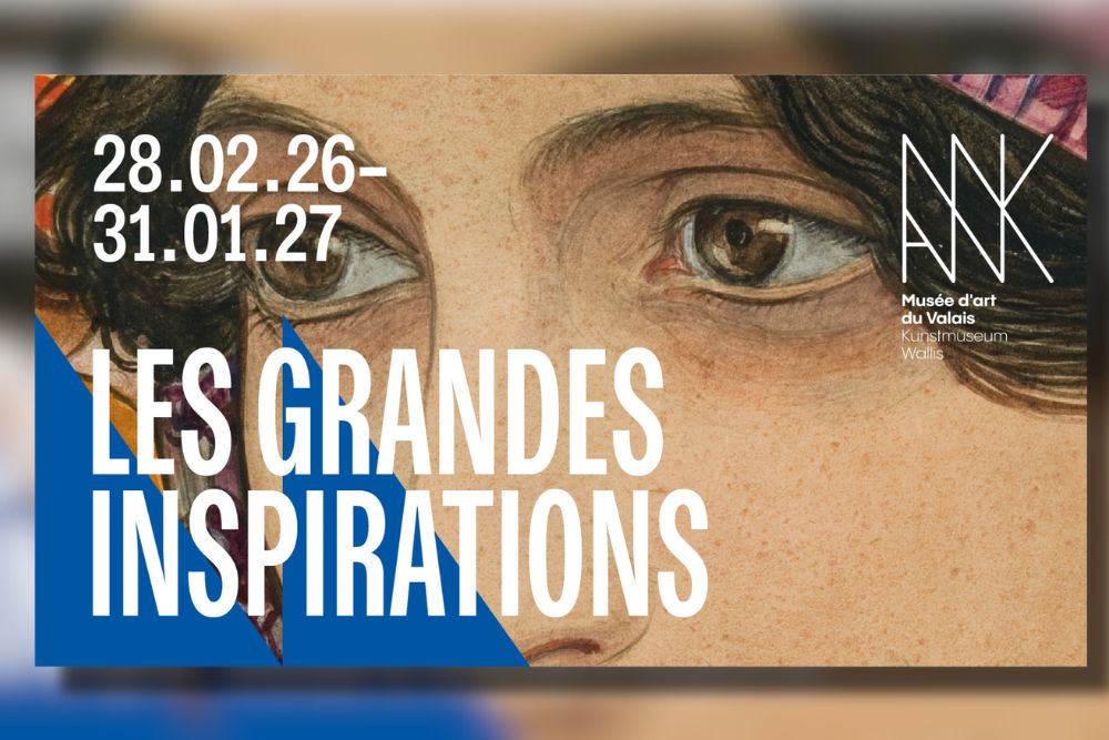 A la suite du succès de son premier cycle d’expositions, le Musée d’art du Valais poursuit sa nouvelle programmation avec Les grandes inspirations, présenté du 28 février 2026 au 31 janvier 2027. Ce nouveau cycle réunit à la fois des œuvres de la collection du musée et des œuvres créées pour l’occasion, des expositions collectives et des expositions monographiques, des projets de nature historique et des projets d’artistes issus de la scène contemporaine suisse. Il explore les sources multiples de la création artistique en abordant des thématiques telles que la transmission, les relations humaines et les enjeux contemporains liés aux territoires et aux paysages.