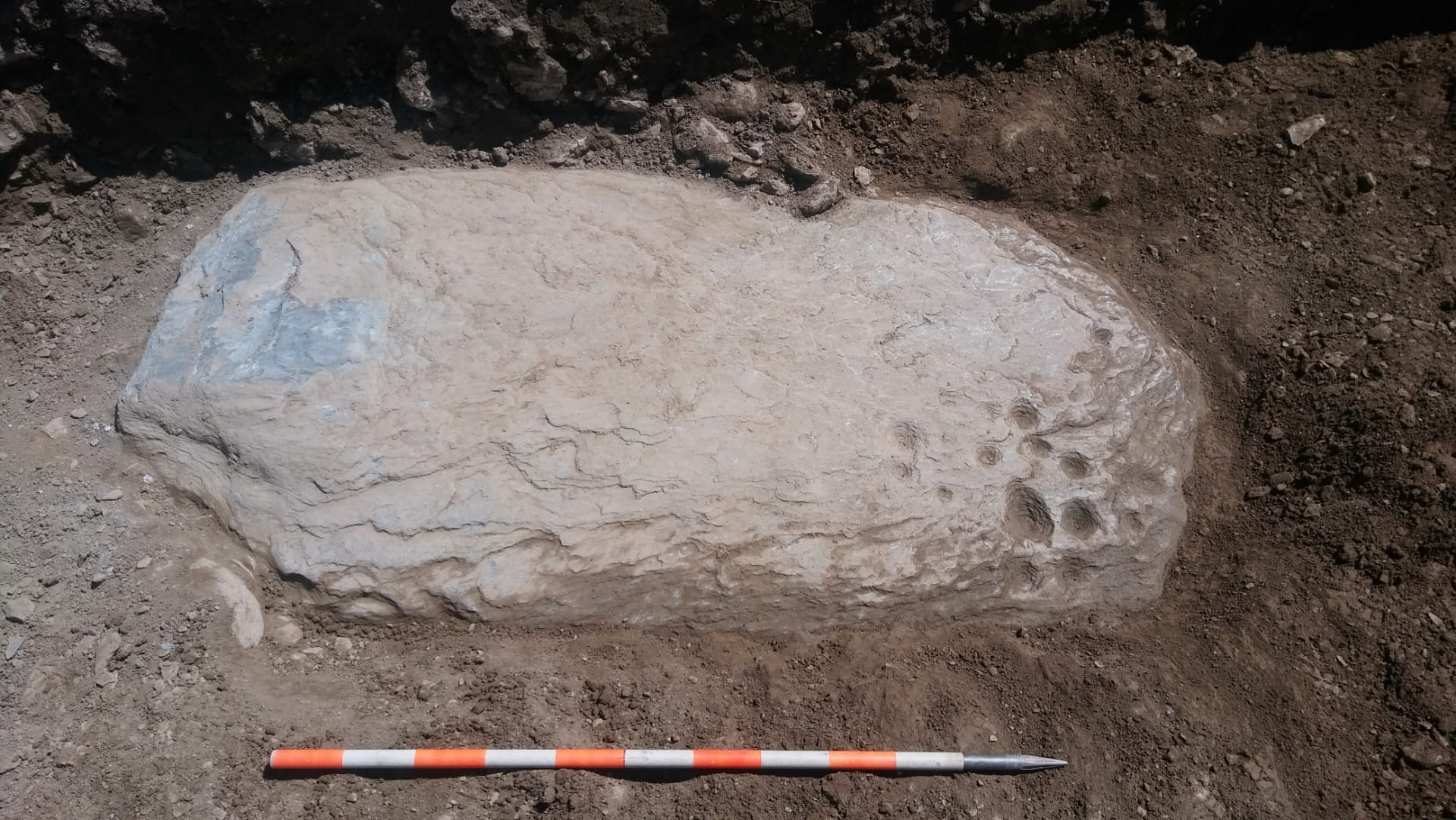 Fig. 3. Un nouveau type de stèle ? Une stèle anthropomorphe ornée de cupules. © SBMA - ARIA SA.