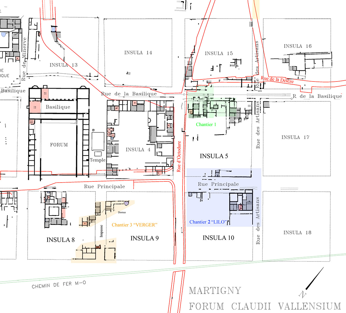 « Les fouilles menées par les archéologues de l’Etat du Valais permettent de compléter magistralement la connaissance de la ville antique de Martigny nommée alors Forum Claudii Vallensium. » a précisé Jacques Melly. D’importants blocs architecturaux de calcaire ont été retrouvés, qui ont heureusement échappé à leur combustion dans un four à chaux. Ils appartenaient au temple principal de la ville romaine : leur étude apportera de nombreuses indications sur l’architecture de ce monument dont le podium a été fouillé en 1901.