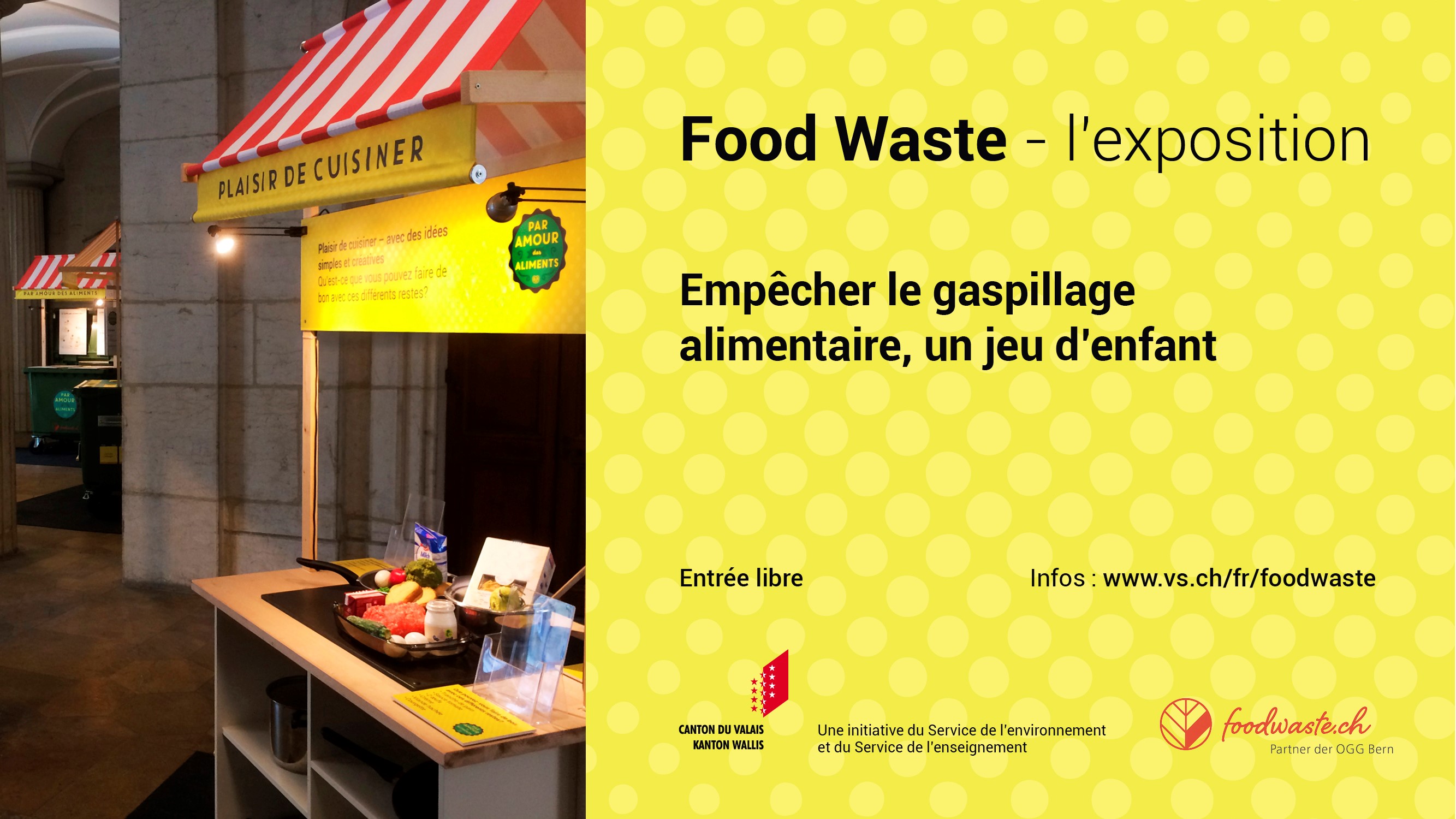 Afin de sensibiliser la population valaisanne à cette problématique, l’exposition itinérante « Food Waste » sera présentée successivement à Naters, Monthey et Sion, entre le 4 décembre 2021 et le 24 février 2022. Didactique et ludique, l’exposition fournit des conseils pratiques pour la gestion quotidienne des aliments en 5 étapes, de la planification d’un menu au recyclage des restes, en passant par les achats, ou le stockage à la maison. Elle présente également des solutions simples et facilement applicables afin d’éviter le gaspillage alimentaire.