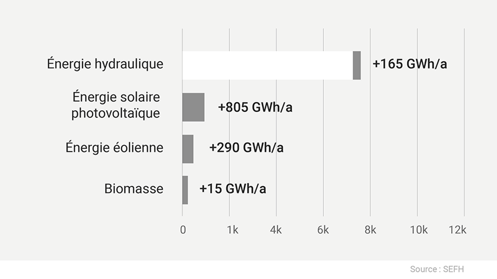 La production d’énergie indigène et renouvelable est amenée à croitre fortement, également au niveau de la production hydroélectrique.
