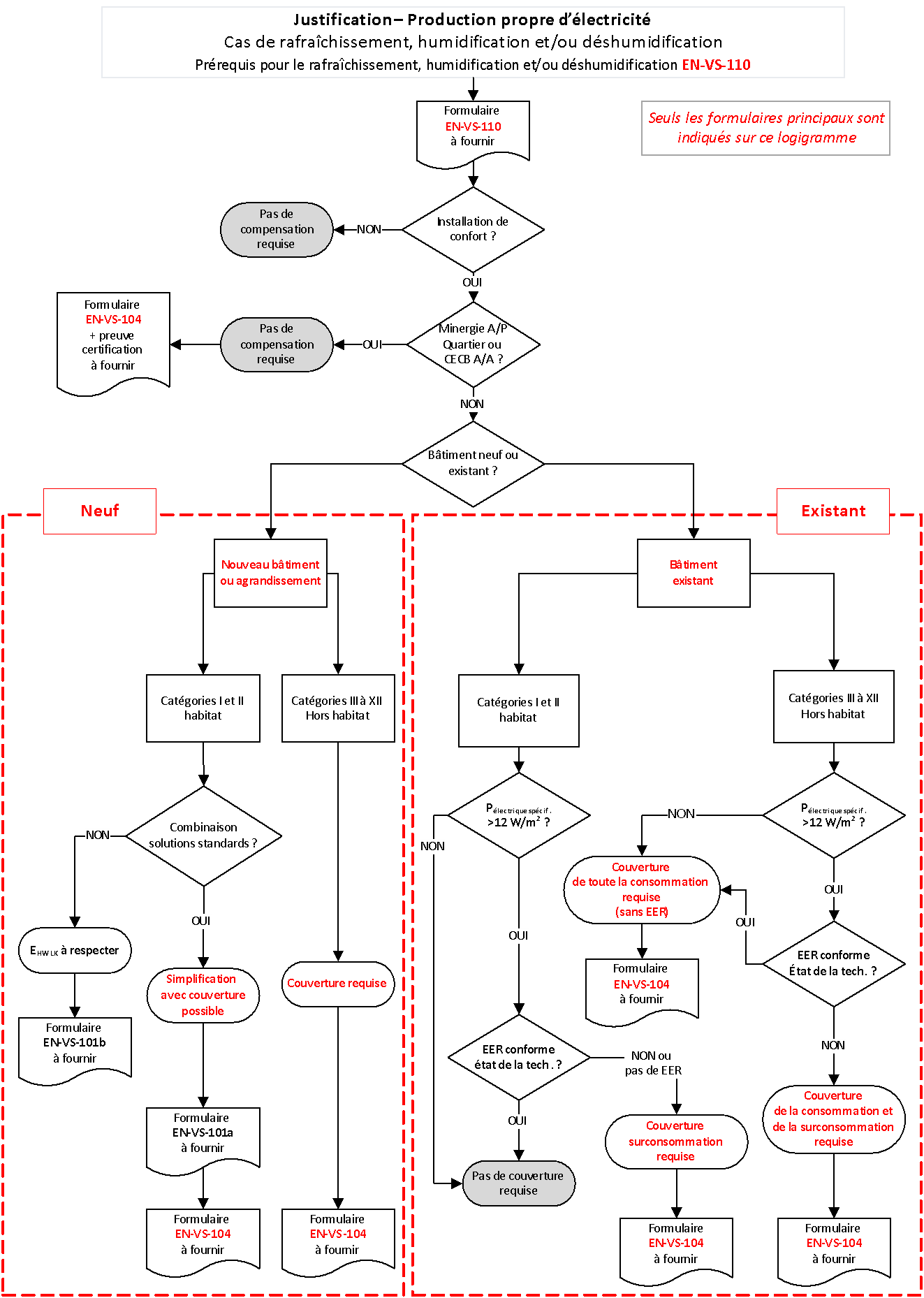 Um das Verfahren für neue Wohnbauten in denen eine Kühlung vorgesehen ist zu vereinfachen und um damit die Erstellung eines «rechnerischen Nachweises» zu vermeiden, ist die Möglichkeit der Verwendung des Nachweises mittels «Standardlösungskombinationen» möglich, indem der Nachweis der «Eigenstromerzeugung» beigefügt wird, der für solche Fälle erforderlich ist, um den Strombedarf für die Kühlung zu kompensieren (Vollzugshilfen EN-VS-101, EN-VS-104 und EN-VS-110).