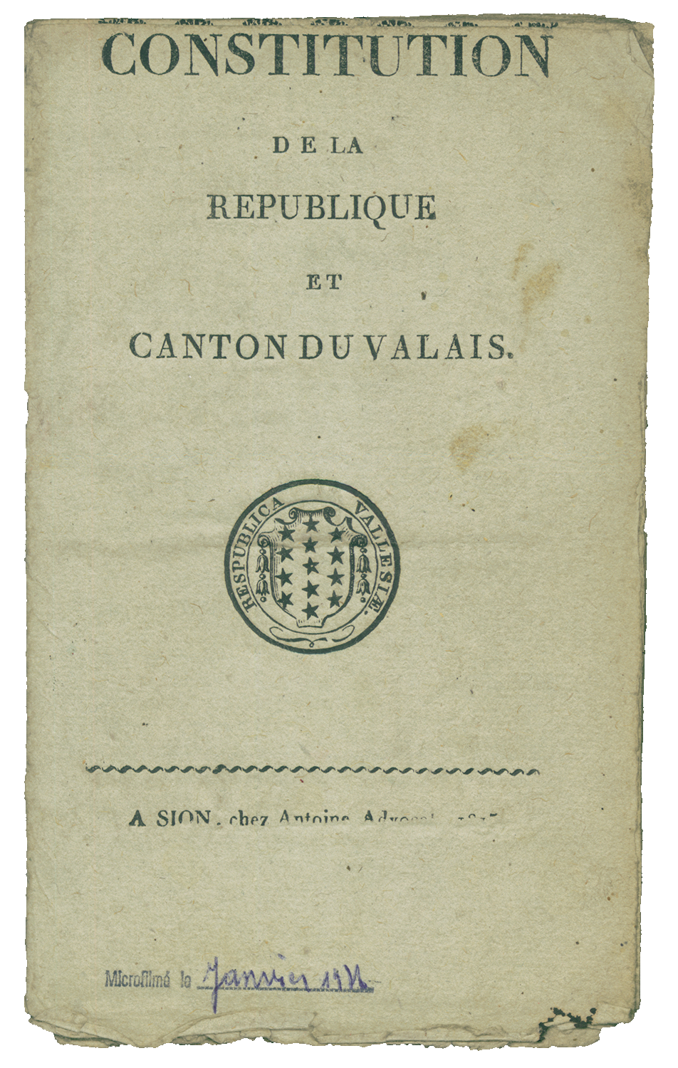 Date : Sion, 12.05.1815, imprimeur Antoine Advocat