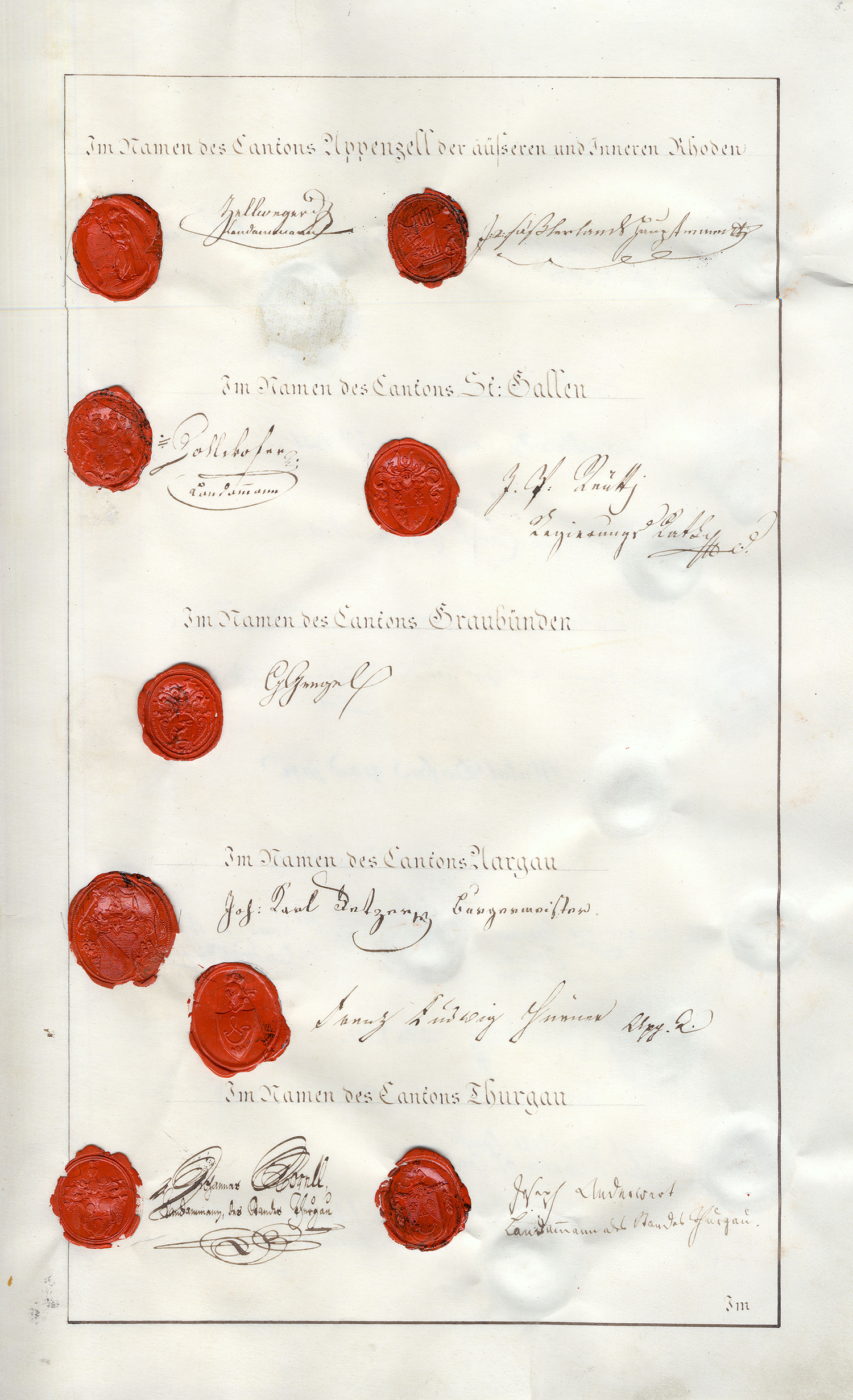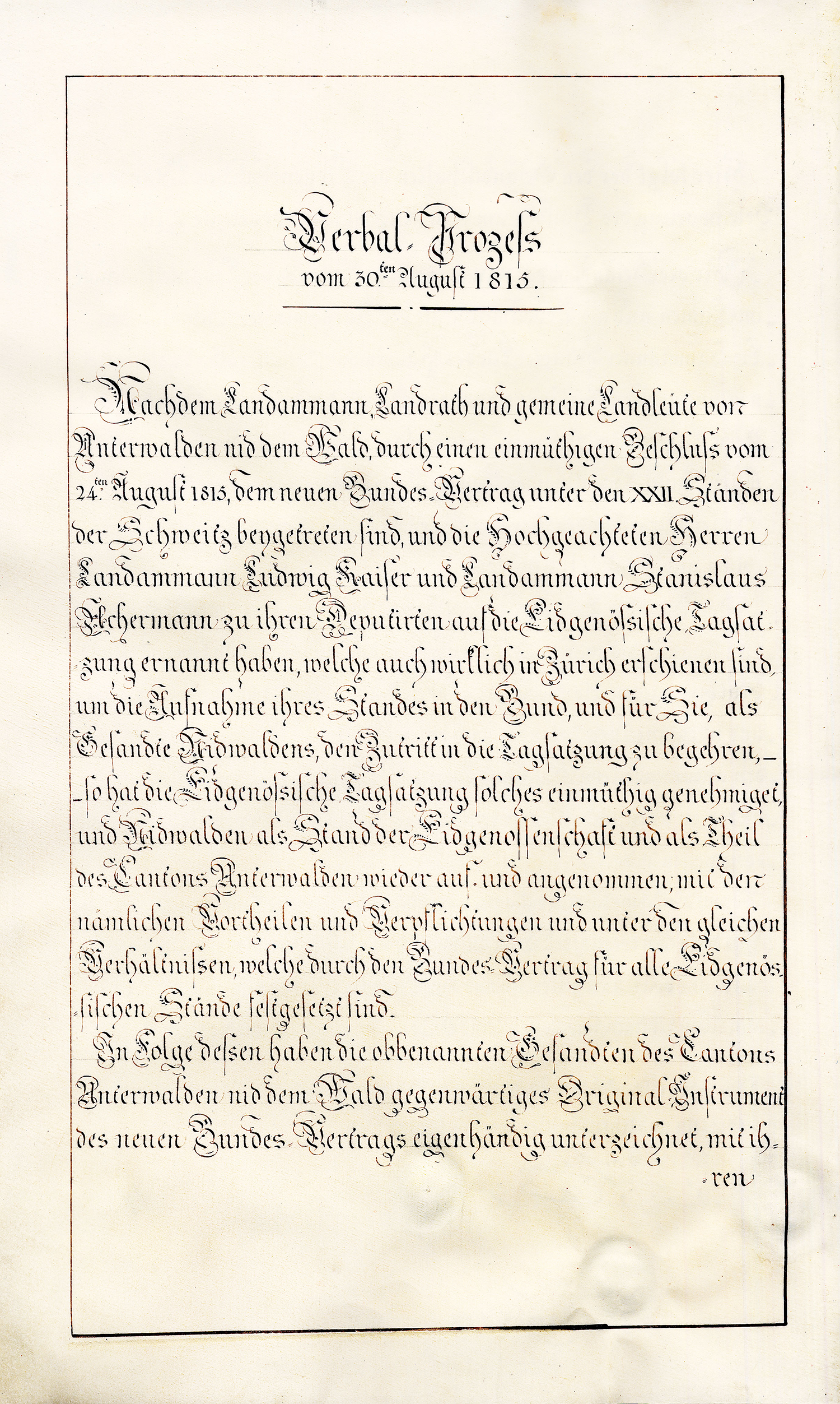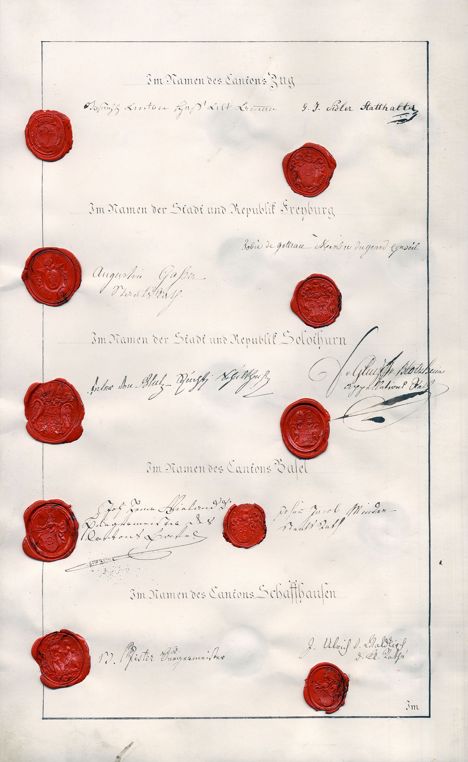 Also geschehen und unterzeichnet in Zurich den 4ten Augstmonat im Jahr ein tausend acht hundert und fünfzehn (1815).