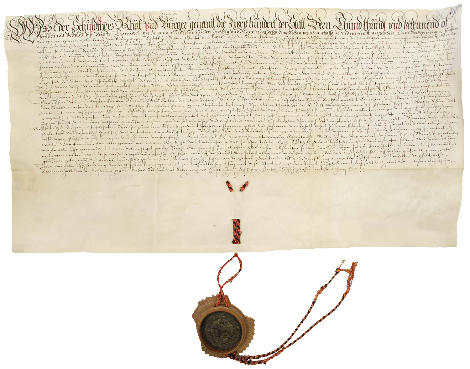 Titre : Traité d'alliance entre le canton de Berne et l'évêque de Sion Walter Supersaxo, le chapitre et les Dizains