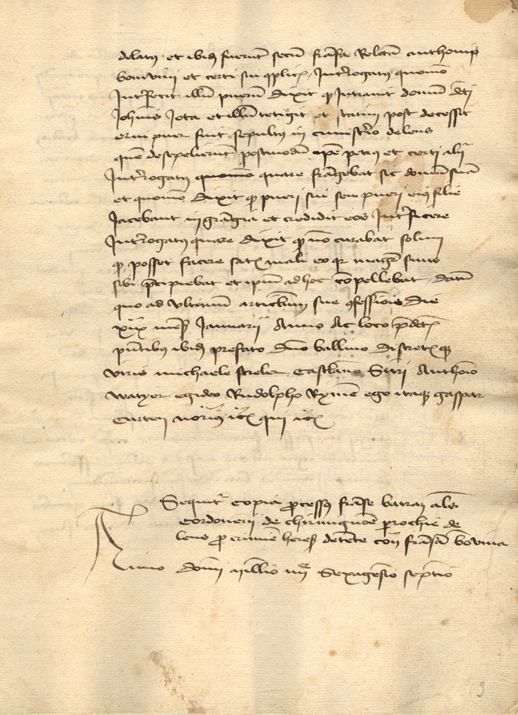 Datum quoad ultimum sue confessionis, die XIX mensis januarii anno ac loco predictis presentibus ibidem prefato domino ballivo discretisque viris Michaele Streler, castelano Sirri, Anthonio Watyer, Egideo Rudolpho Rymen, ego itaque Gaspar Curten notarius etc. qui etc.