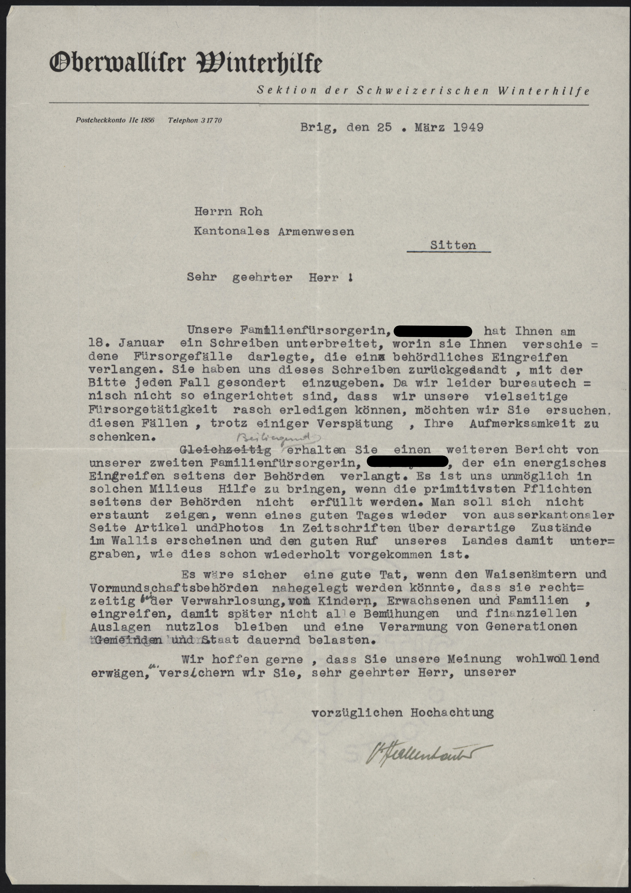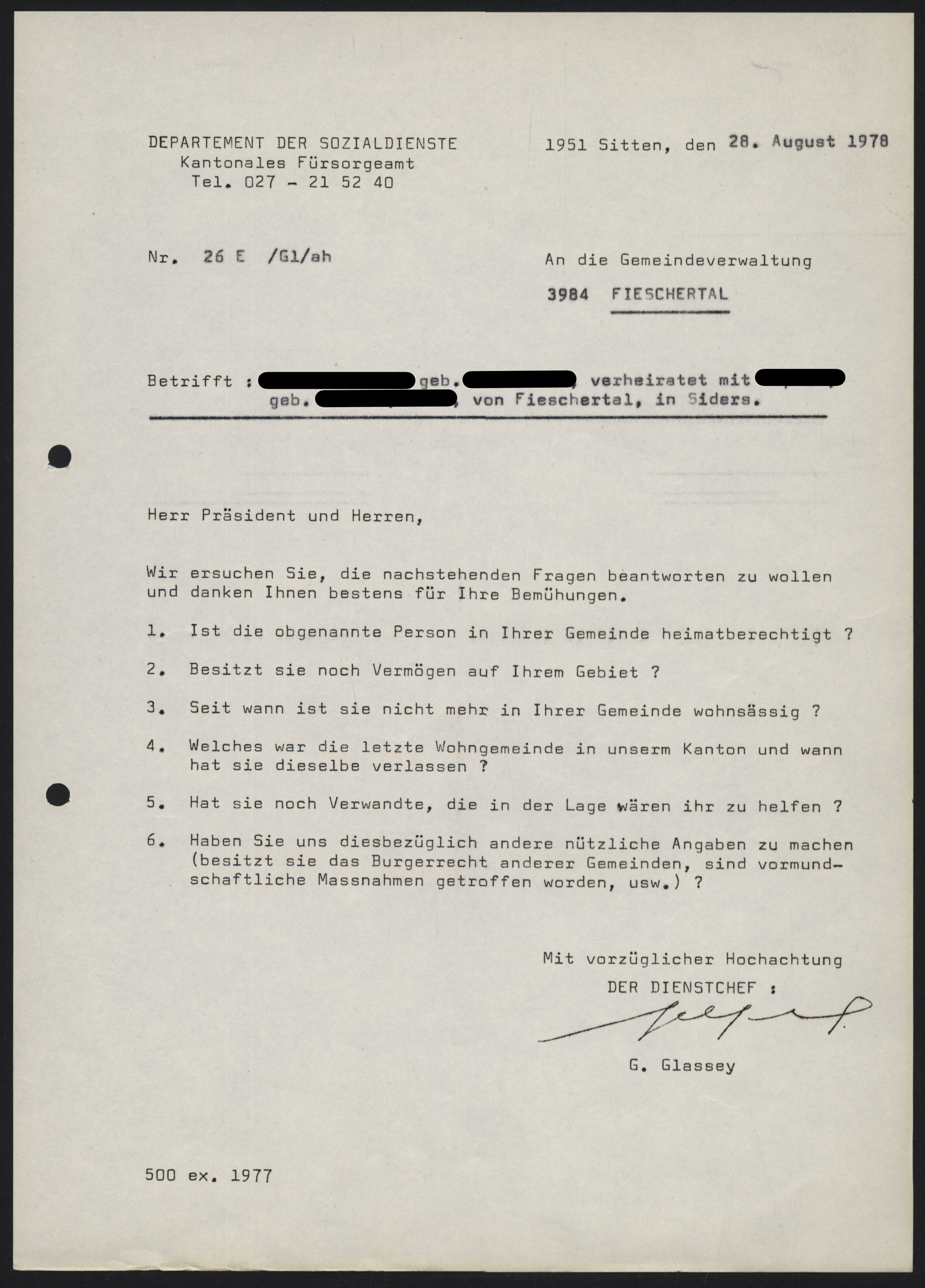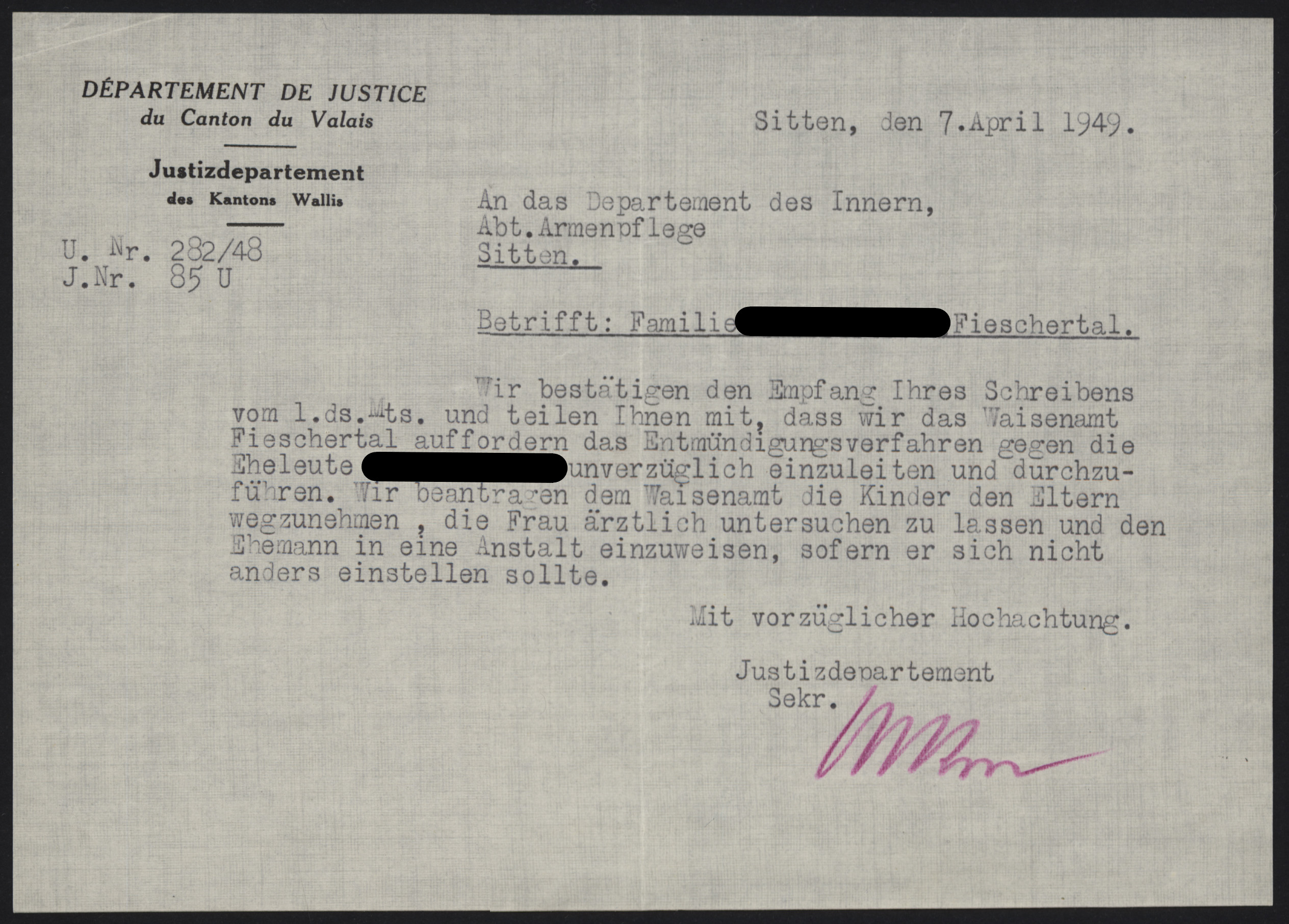 En 2013, la Confédération a présenté ses excuses officielles aux victimes de mesures de coercition à des fins d'assistance et de placements extrafamiliaux pour les injustices subies. Ces excuses ont marqué une étape importante dans le traitement sociopolitique de ce chapitre sombre de l'histoire suisse. Les archives jouent un rôle central dans la mise à jour des pratiques de l'époque et pour les personnes concernées. C'est le cas des Archives de l'Etat du Valais, qui ont traité ces dernières années de nombreuses demandes de consultation et de recherche de documents émanant de personnes concernées.
