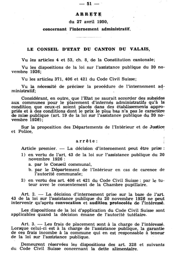 Entre 1930 et 1981, 39’000 personnes ont été victimes de mesures de coercition à des fins d'assistance et d'internement administratif en Suisse. Pour l'ensemble du 20e siècle, on estime que 50’000 à 60’000 personnes ont fait l'objet de telles mesures de placement administratif. De nombreux Valaisans et Valaisannes figurent parmi les victimes.