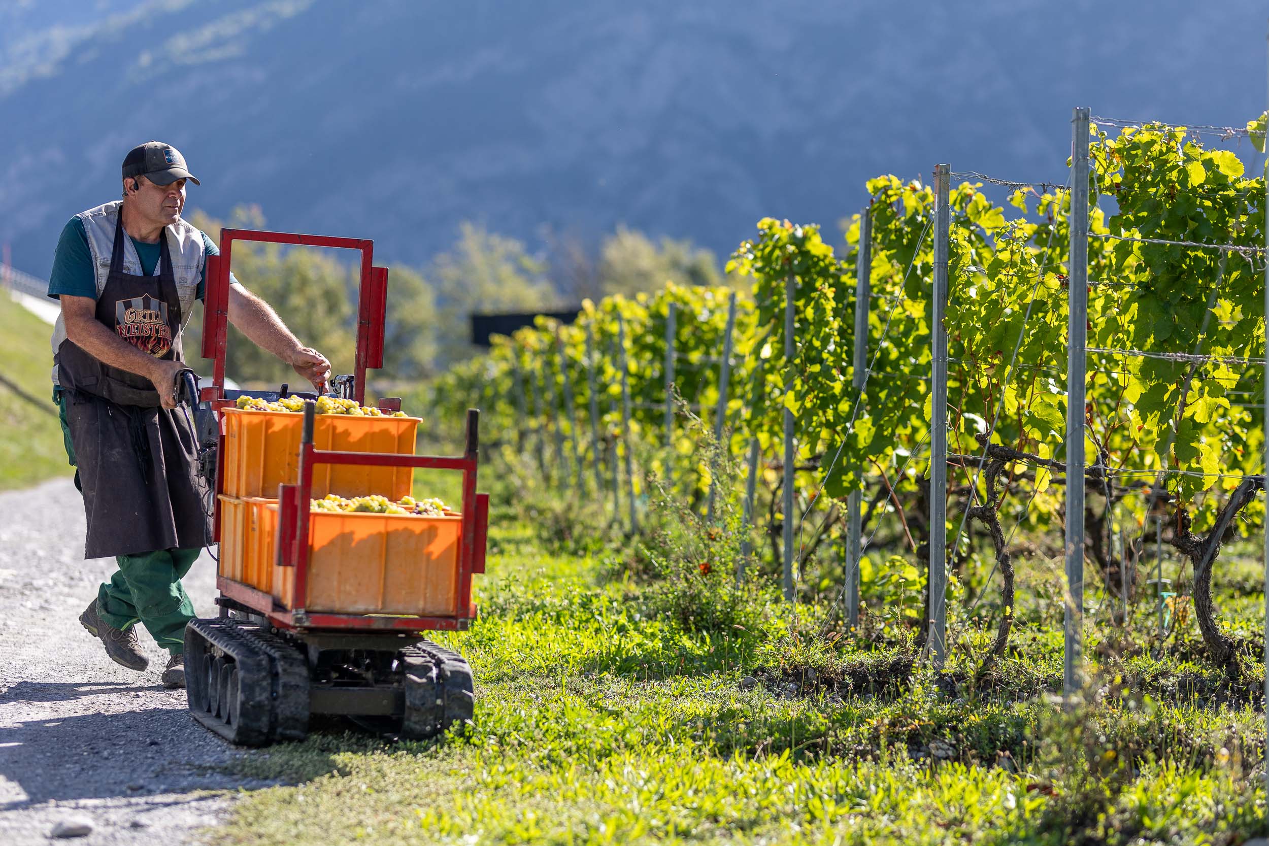 Le Domaine viticole du Grand Brûlé, à Leytron, s’éveille sous les premiers rayons du soleil. Peu à peu, l’ombre des montagnes se retire et l’air se réchauffe. En ce matin de septembre, la douceur semble régner. Pourtant, derrière ce décor de carte postale, un tourbillon s’annonce : celui des vendanges.